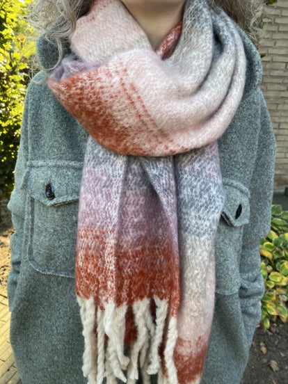 Deze sjaal heeft veel kleuren en is daardoor makkelijk te combineren met veel kleding en jassen.
