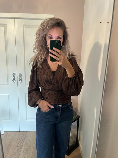 Hoe lief is dit blouse. Ons model draagt haar eigen maat