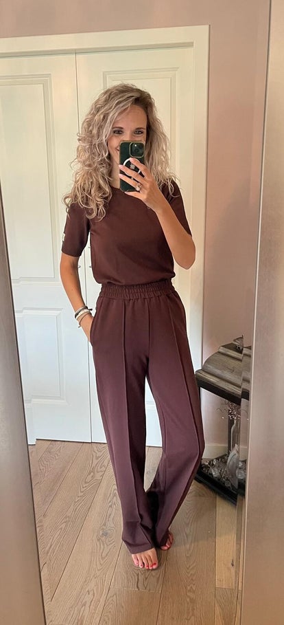 Hoe gaaf is deze pantalon. De kleur bruin wordt samen met bordeaux de kleur voor dit najaar. Mooi met een paar hakken maar ook zeker gaaf met sneakers. De pantalon valt op maat. Ons model is 1.73 cm