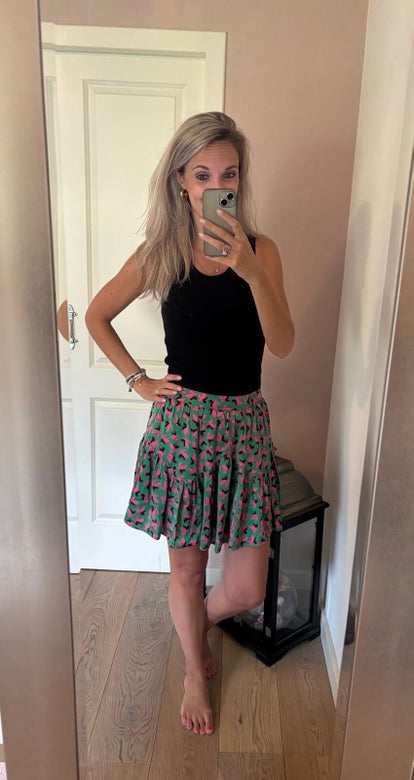 Deze rok heeft elastiek in de boord waardoor deze goed aansluit bij de maten. De rok valt goed op maat.