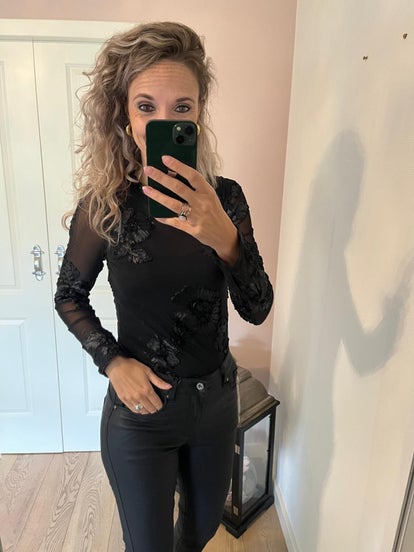 Deze gave body met studs gaat in maten en rekt fijn mee. Heerlijk in dragen dus.