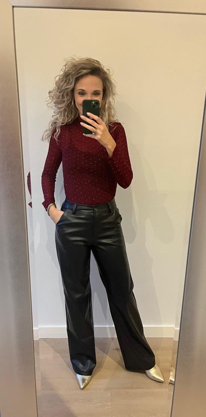 Hoe gaaf is deze top met subtiel lurex draadje. En dat in die mooie kleur Bordeaux. De top gaat in maten en valt op maat