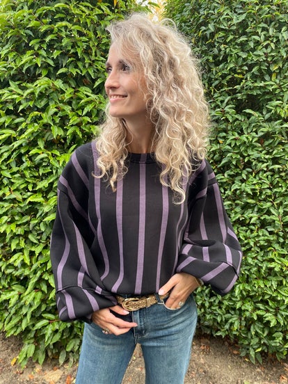 Hoe leuk deze trui met ballonmouwen. Deze trui gaat in de maten S/M M/L