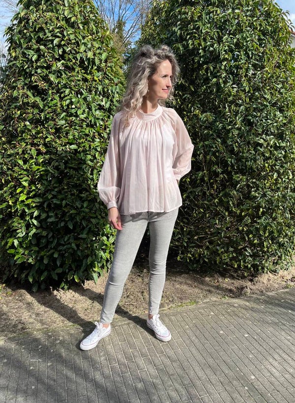 Ons model is 1,74 cm en draagt hier haar eigen maat, maat 36 maar vind deze wel strak zitten.