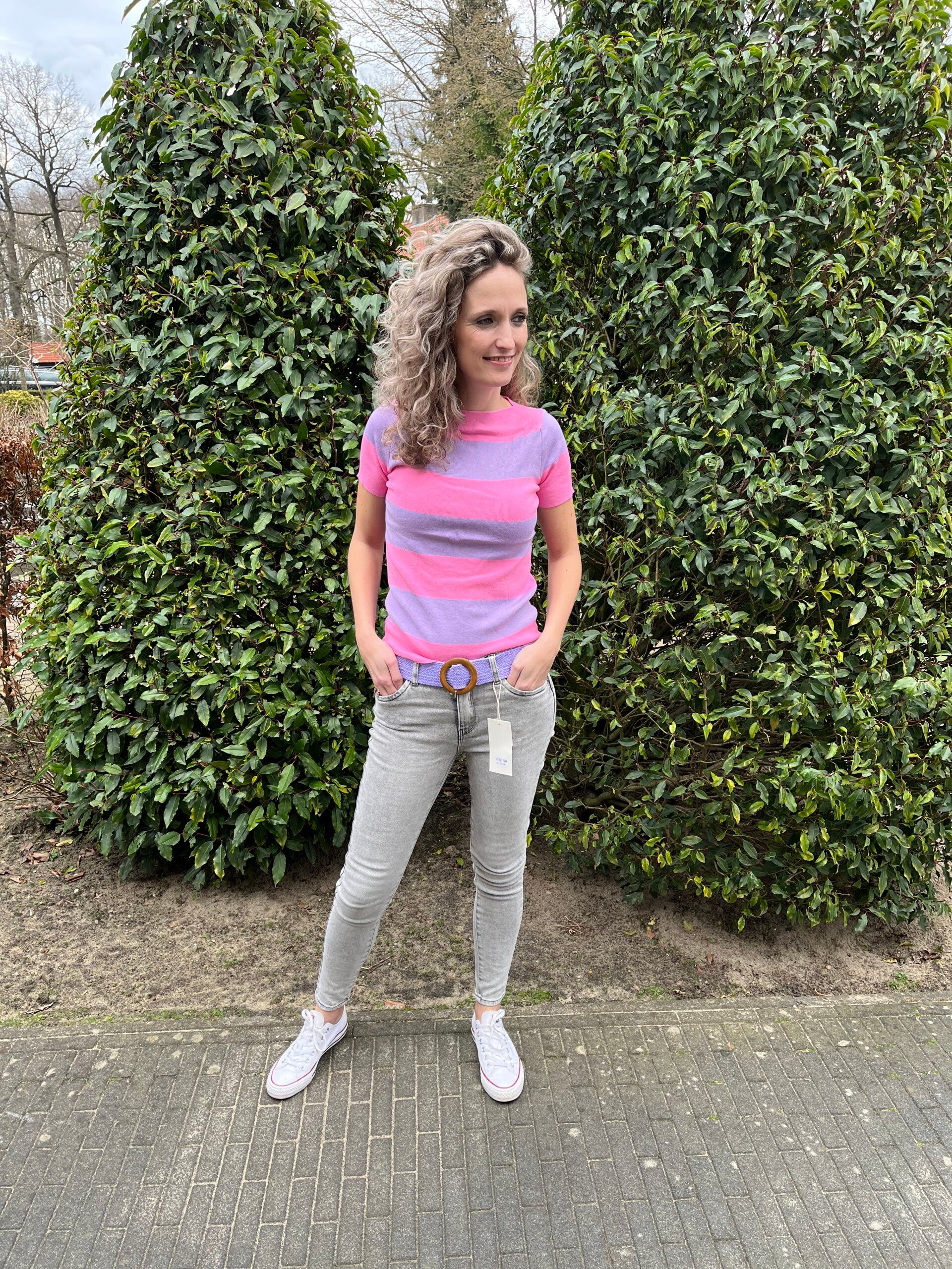 Ons model is 1,74 cm en draagt hier haar eigen maat, maat 36 maar vind deze wel strak zitten.