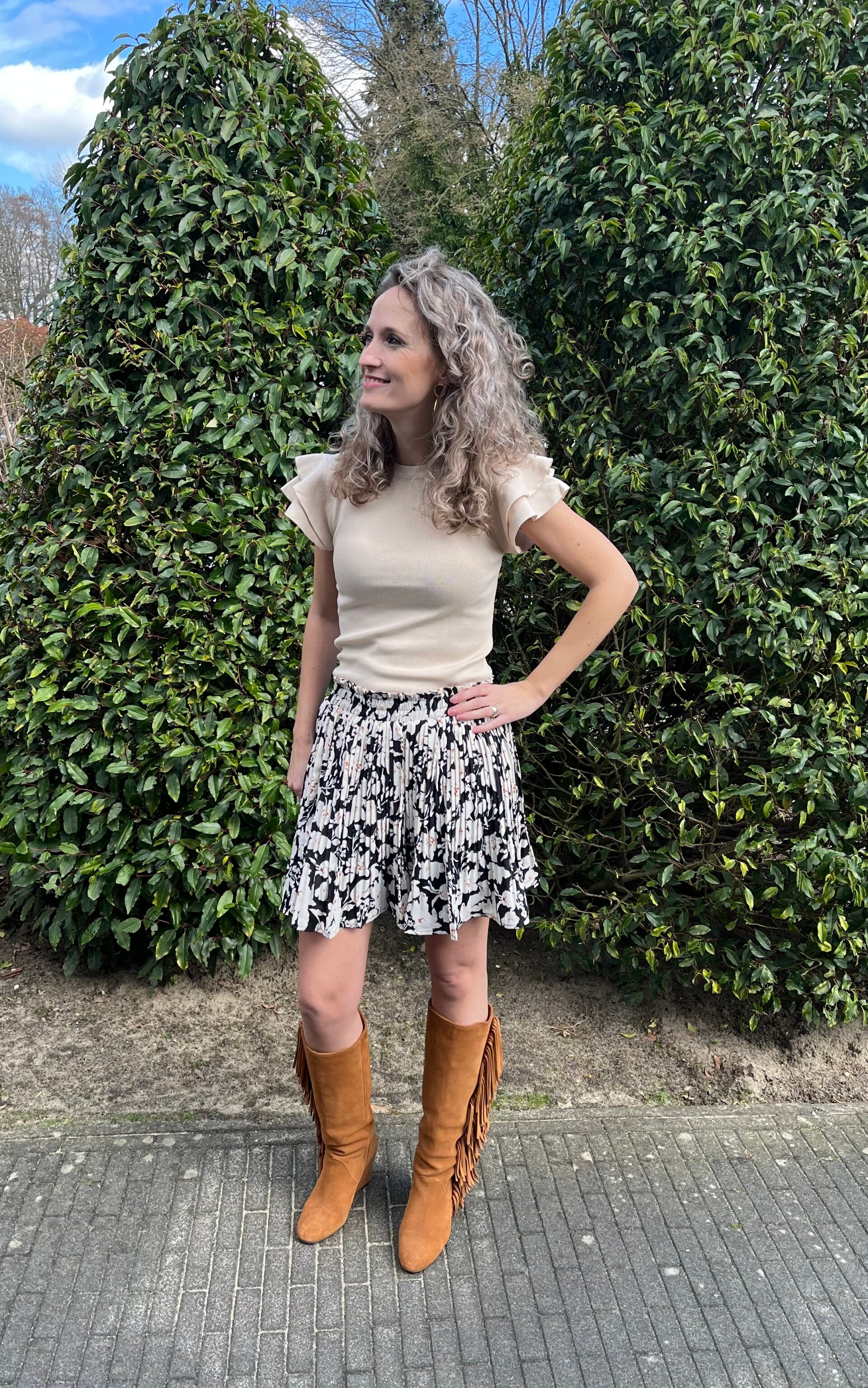 Dit leuke rokje heeft een plissé laag aan de bovenzijde. Er zit een onder rokje vast bij onder. De boord is elastisch wat het dragen natuurlijk super fijn maakt. Het rokje valt op maat.