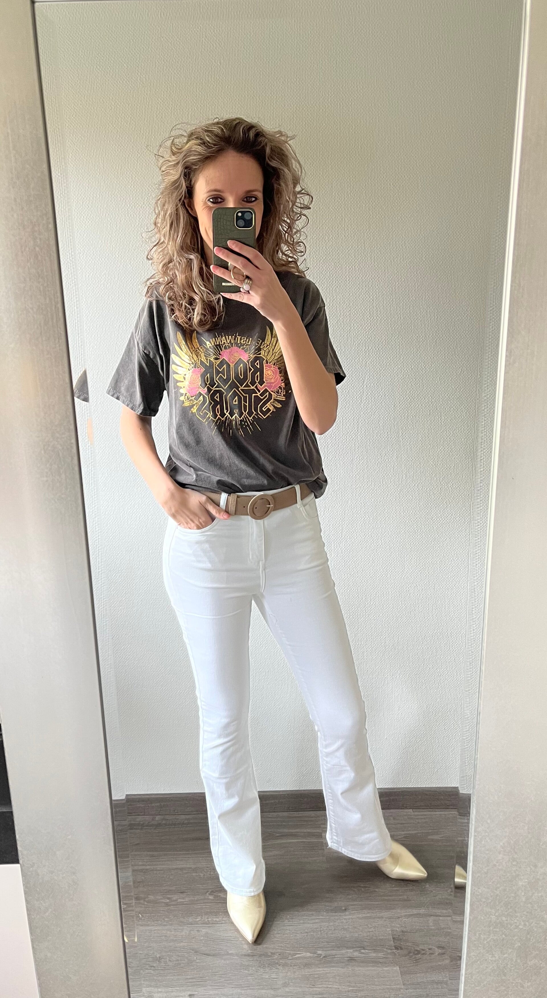 Deze mooie riem kan je bij elke outfit combineren. De gesp is van hetzelfde materiaal als de riem zelf. De riem gaat in maten.