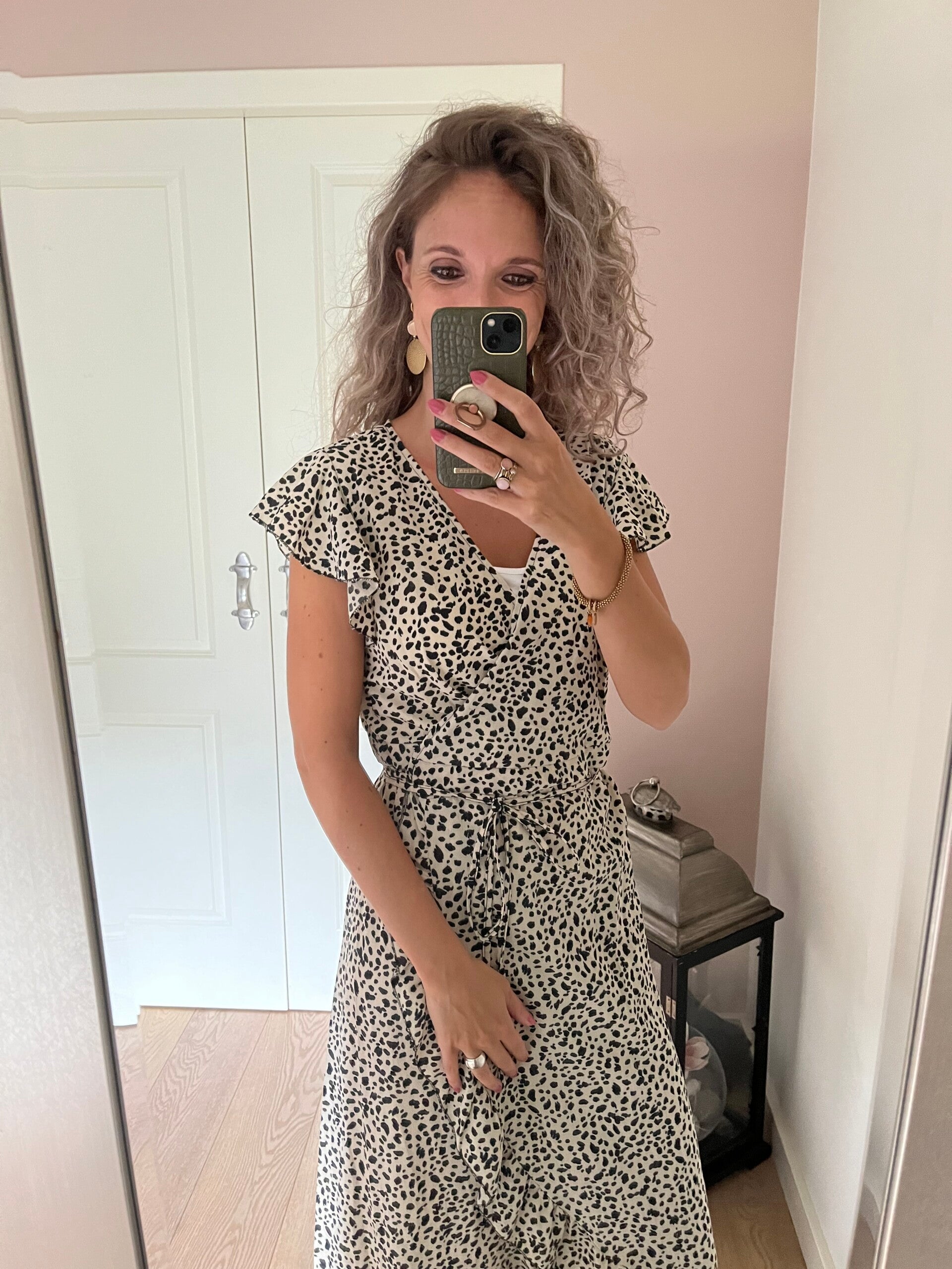 De jurk gaat in maten. Ons model draagt haar eigen maat.