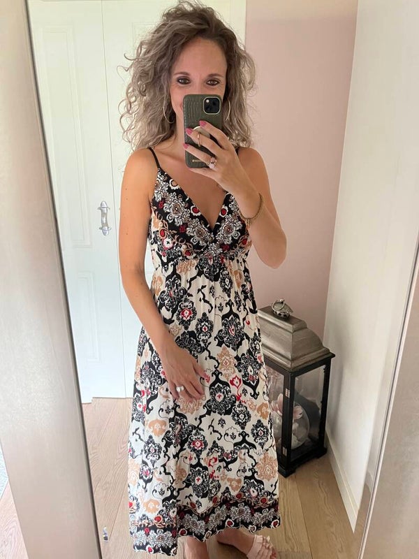 Met het warme weer is deze jurk natuurlijk heerlijk dragen. De bandjes zijn naar eigen wil te verstellen. Mooie print en 100% viscose maakt deze jurk natuurlijk top!
