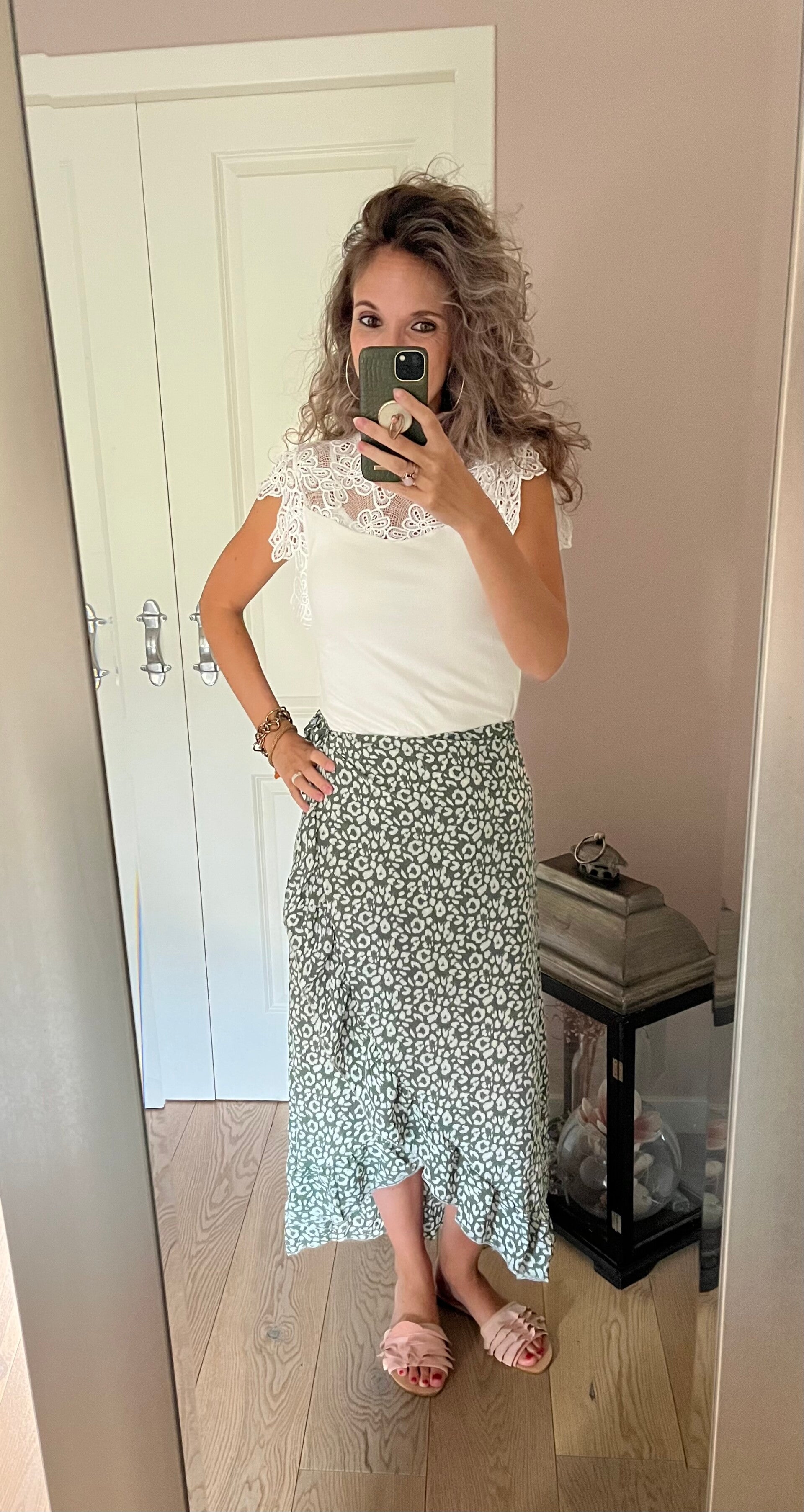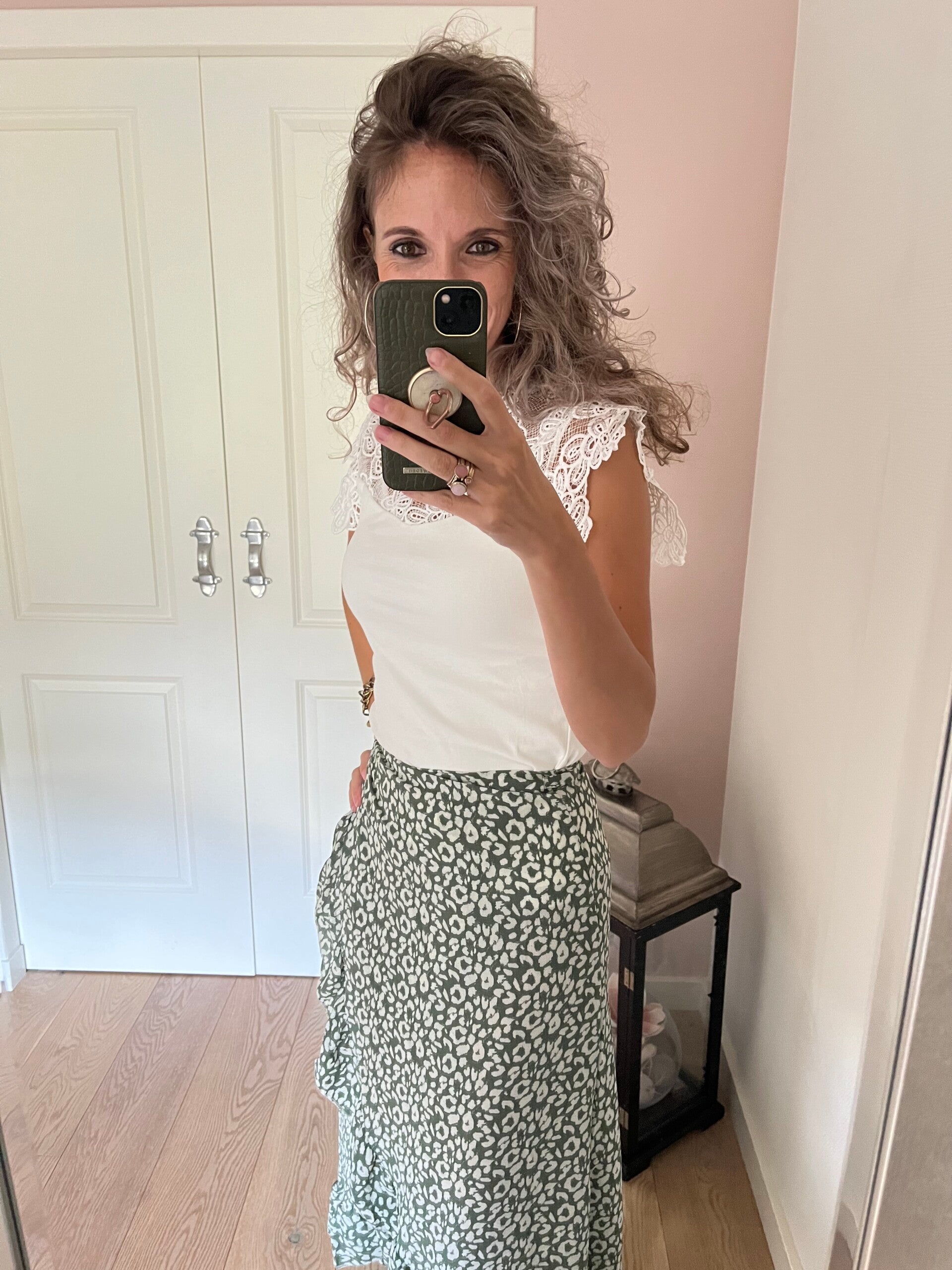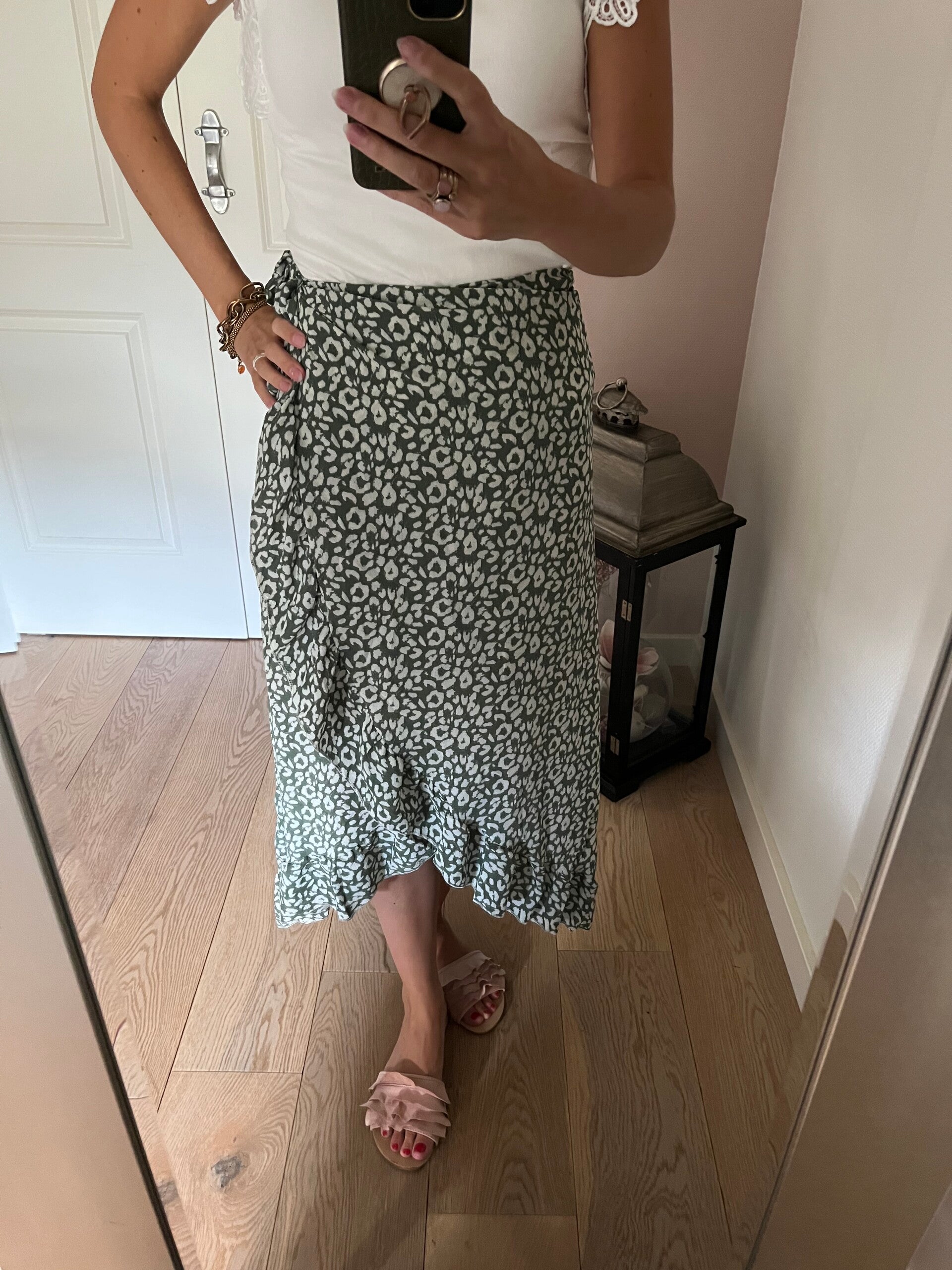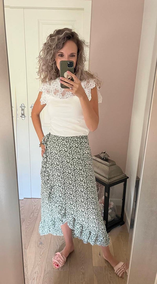Deze leuke wikkel rok kan je zelf qua hoogte en gewenste strakte bepalen. Leuk om te combineren met een witte kanten top! De rok gaat in de maten S/M L/XL
