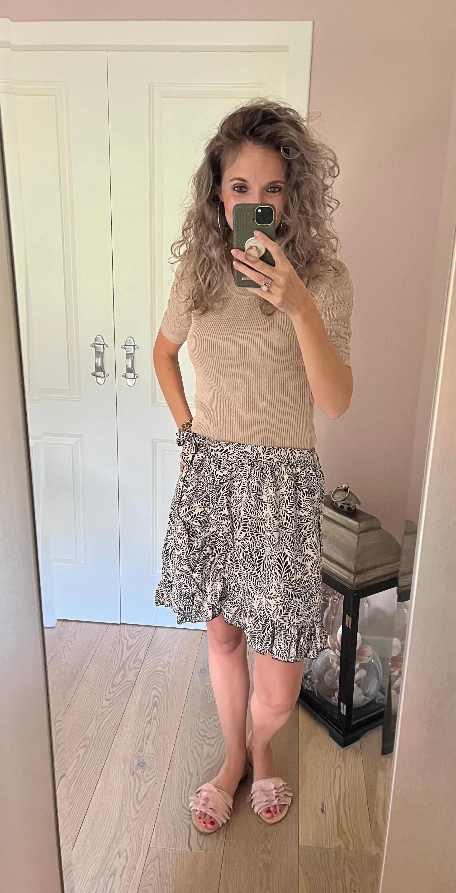 Deze leuke top heeft een subtiel lurex draadje. De mouwen zijn leuk met heel iets pof afgewerkt. Deze top gaat in de maten S/M M/L