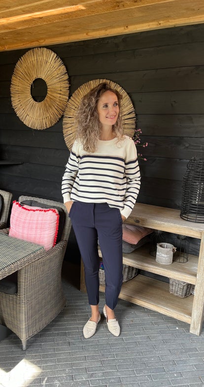Ons model draagt maat S, haar eigen maat en is 1,74 cm