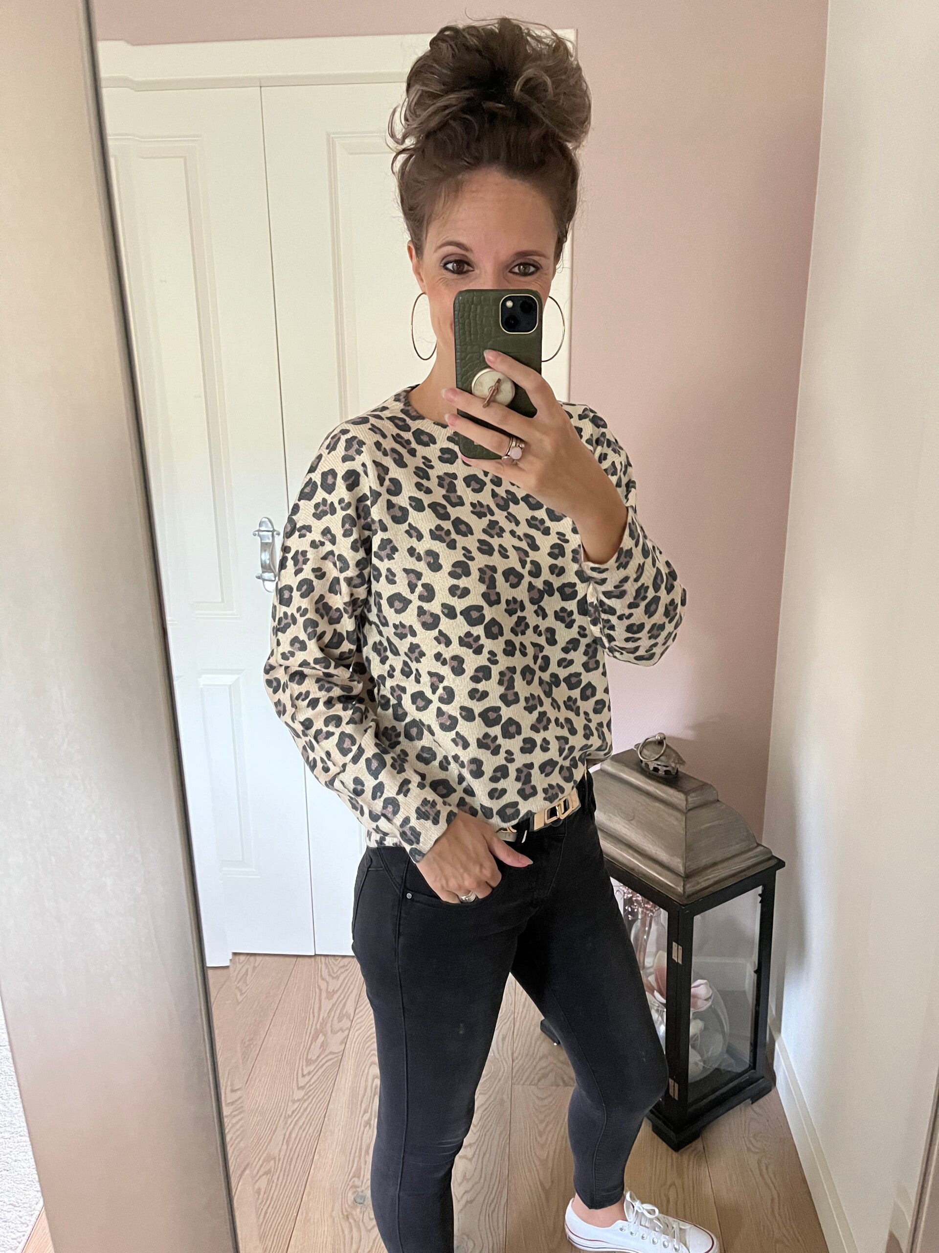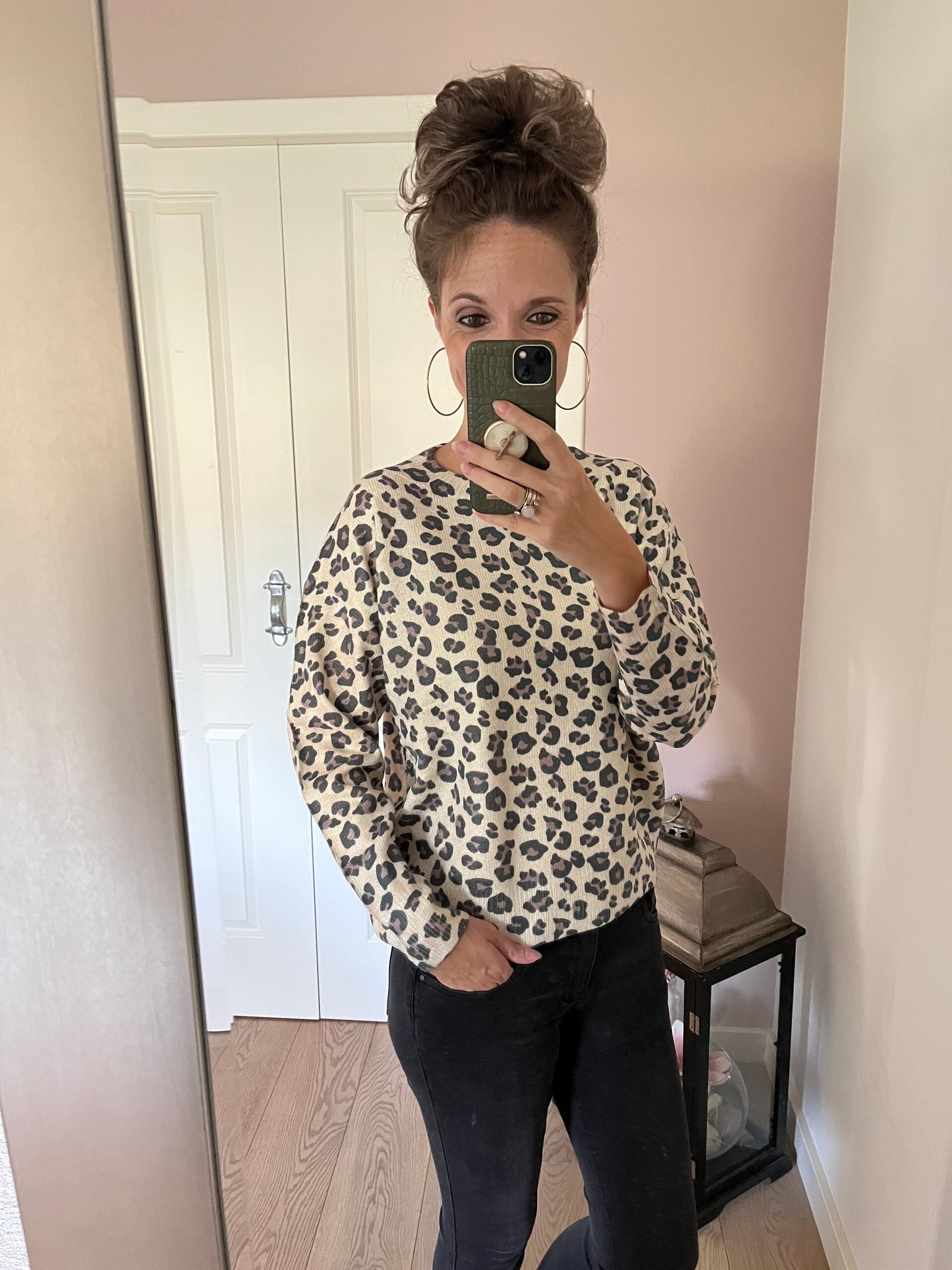 De panter print is al jaren niet meer uit het mode beeld weg te denken. Ook dit seizoen gaan we dit veel zien. Deze leuke trui met een subtiel lurex draadje is dan ook een absolute topper. Leuk om zo te dragen of met een blousje eronder. De trui is one size en te dragen t/m een kleine maat 42