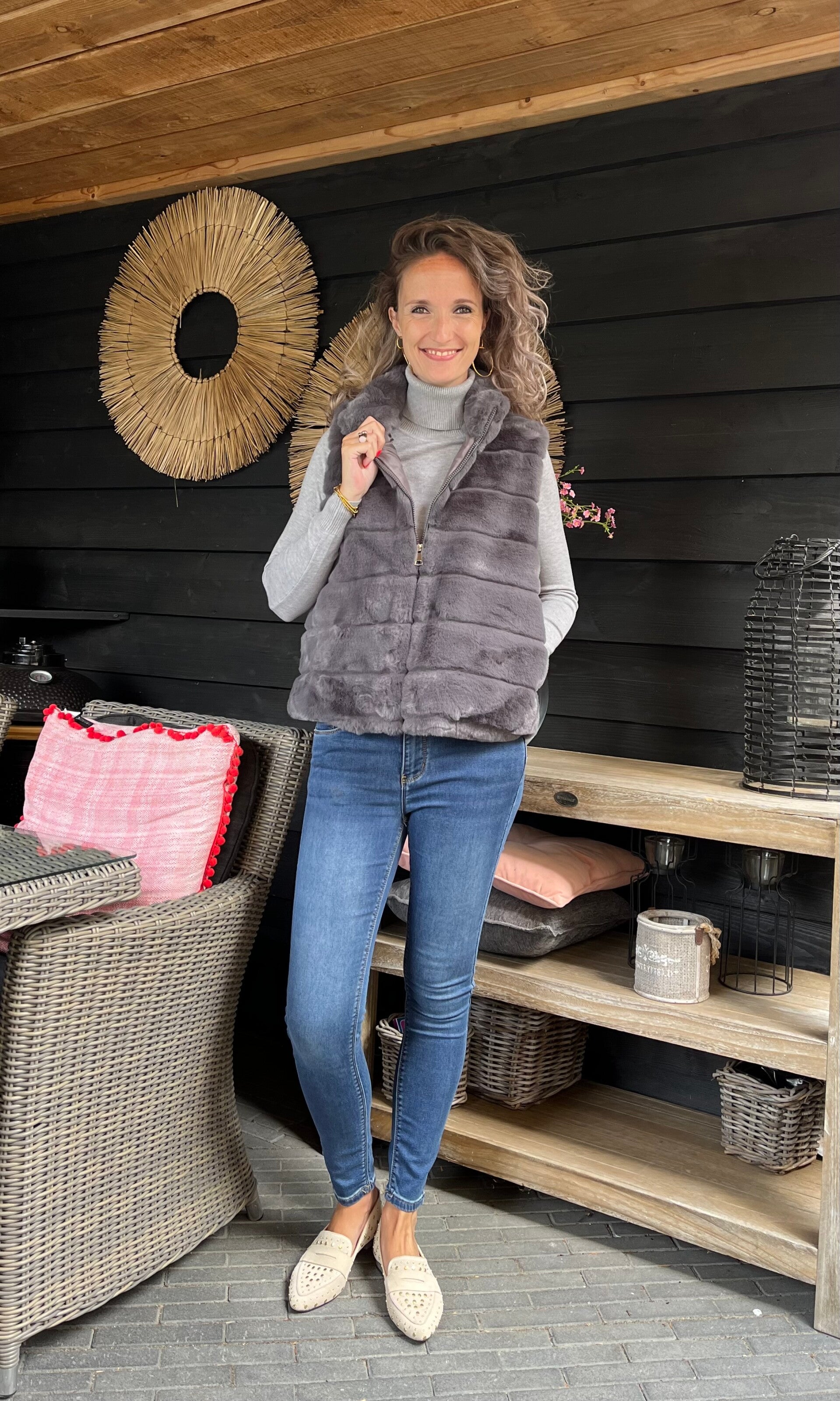 Een echte musthave voor dit najaar en aankomende winter! Deze fijn faux fur bodywarmer hebben wij in verschillende kleuren in de webshop. De bodywarmer is te sluiten met een rits en heeft 2 zakken.