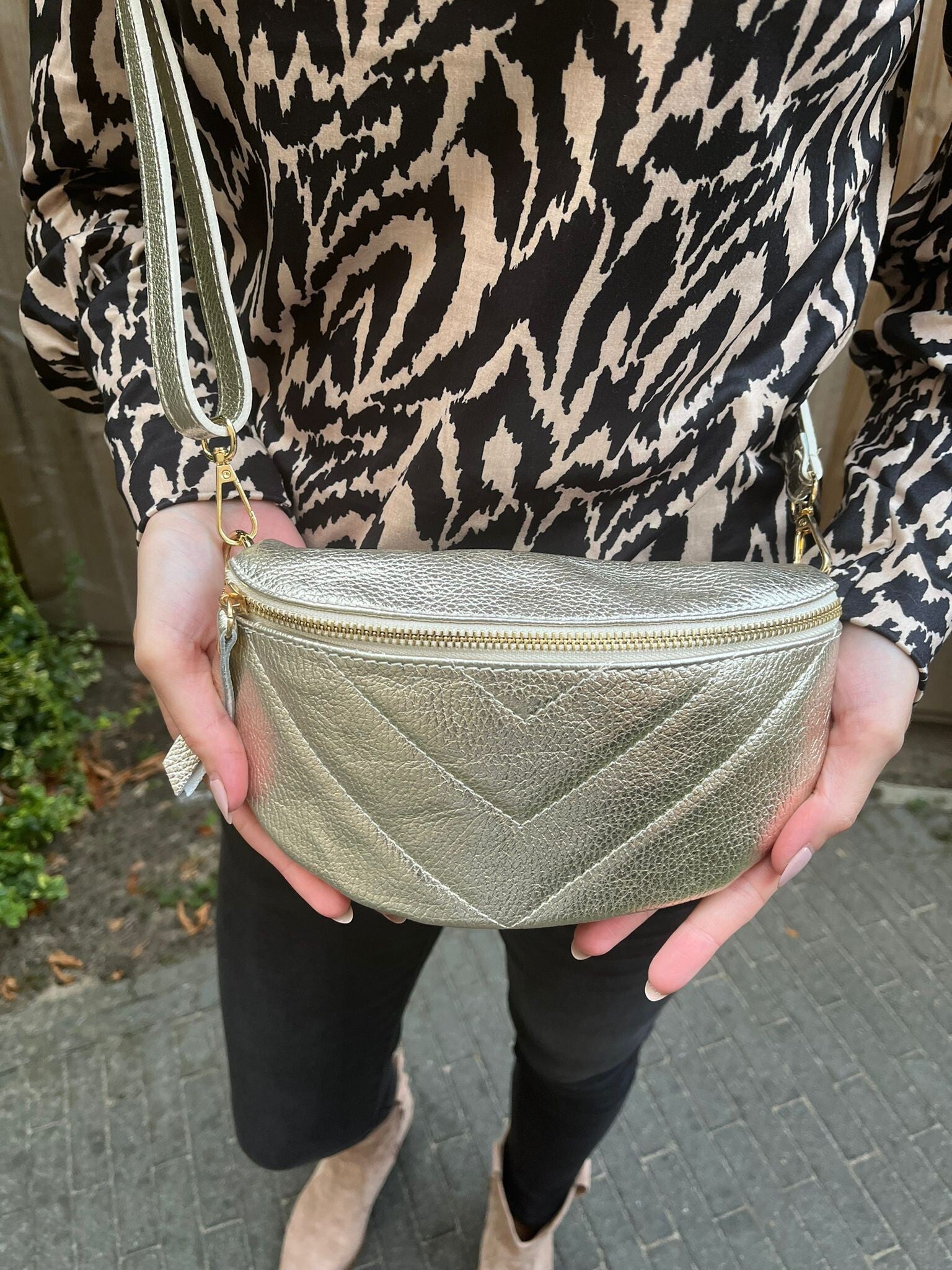 Cross body bag leer gold