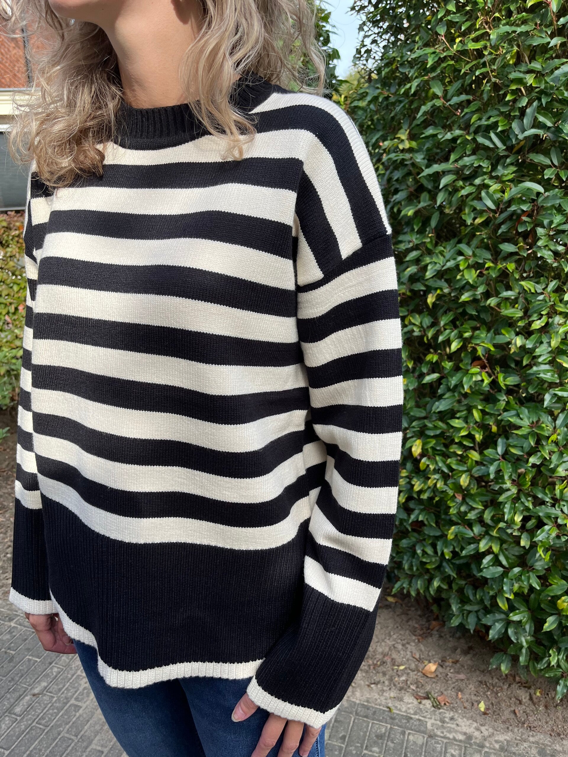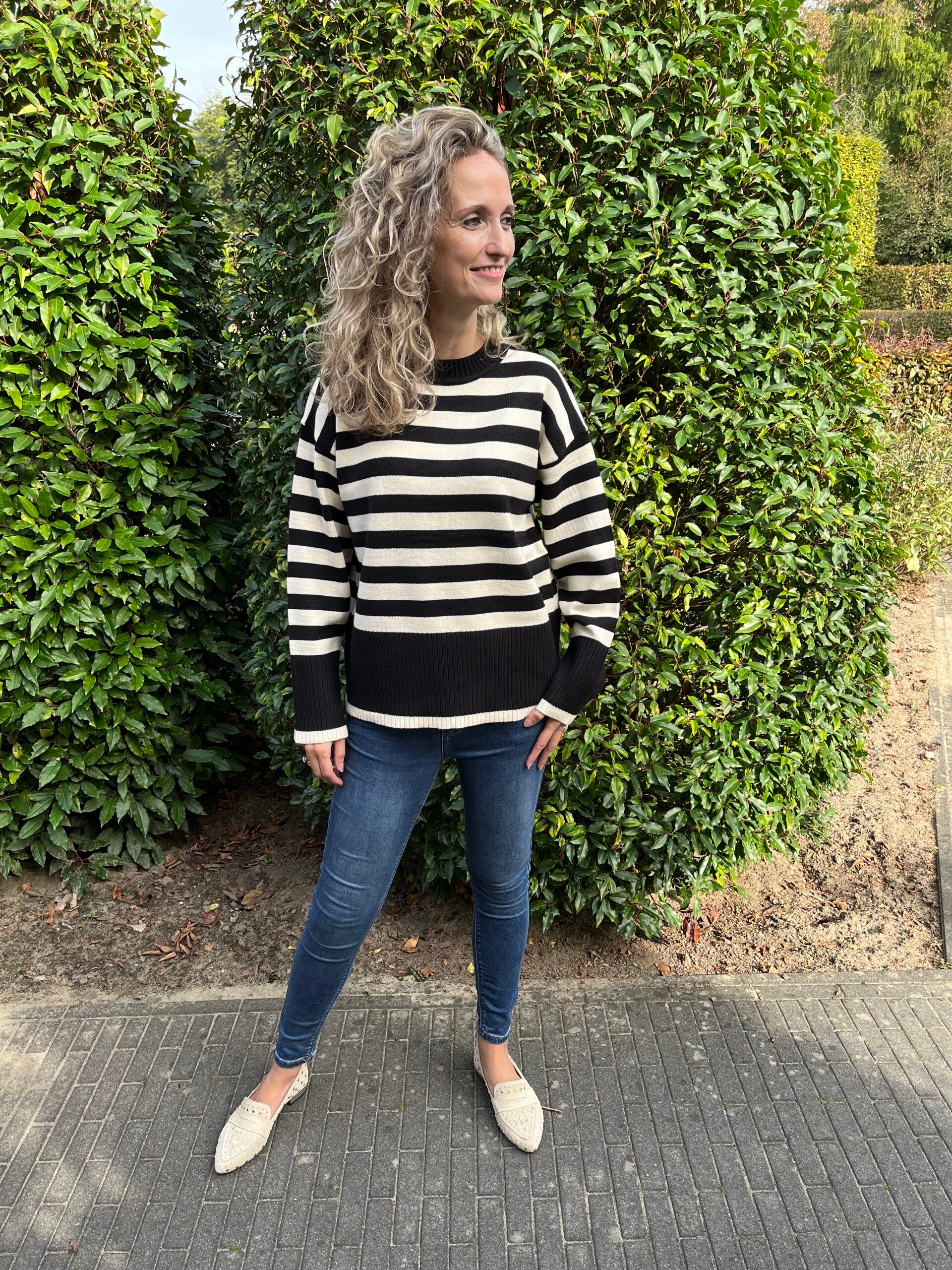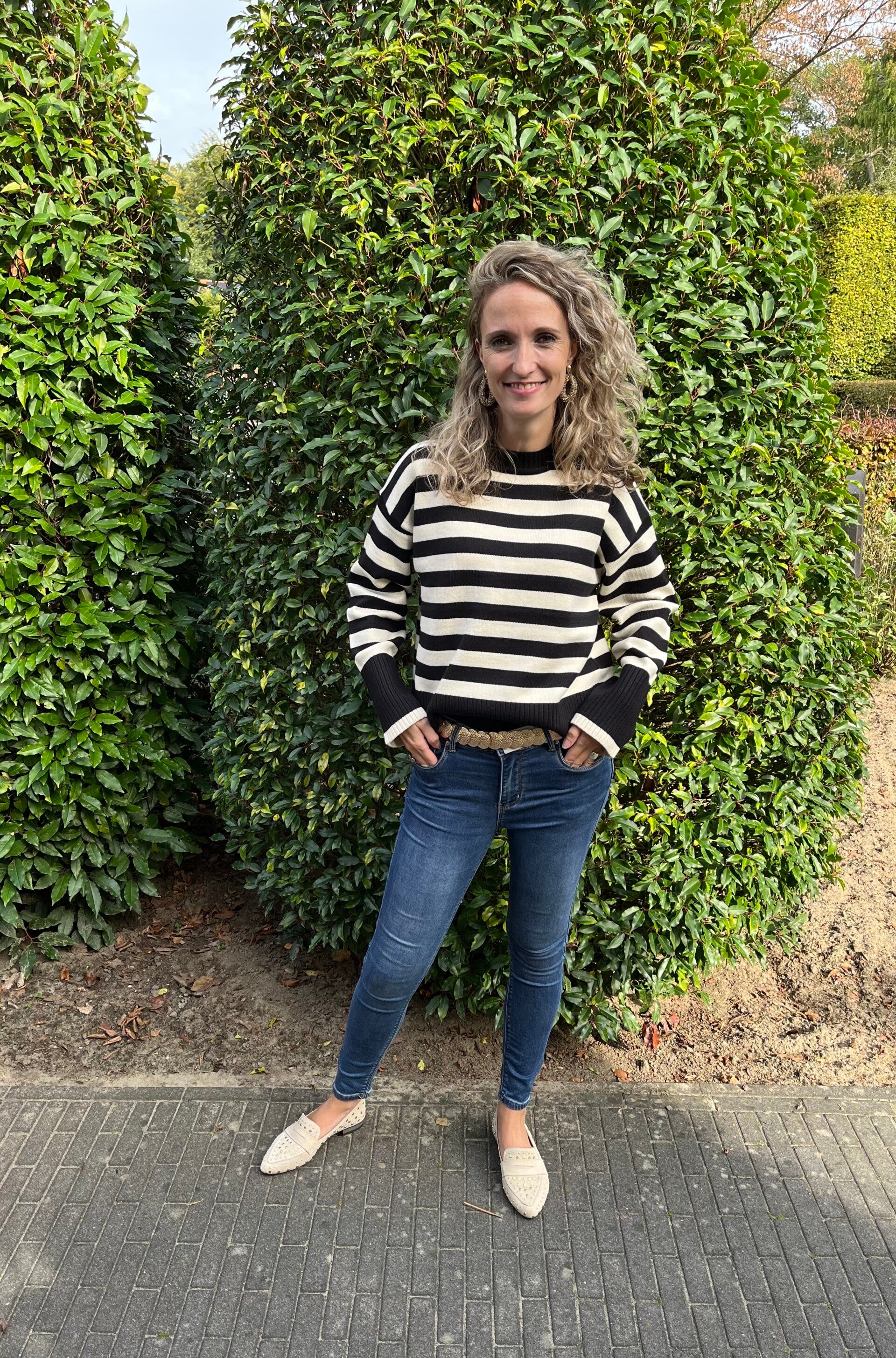 Heerlijke trui voor dit najaar. Makkelijk te combineren door de kleuren en de brede streep.