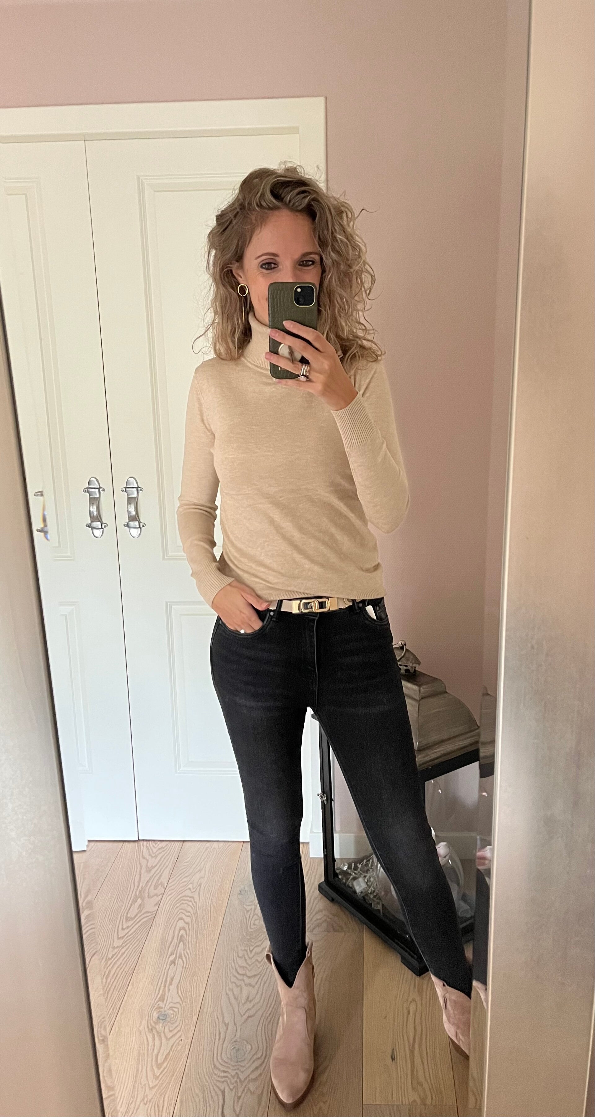 Deze jeans gaat in maten. Ons model draagt maat S, haar eigen maat.