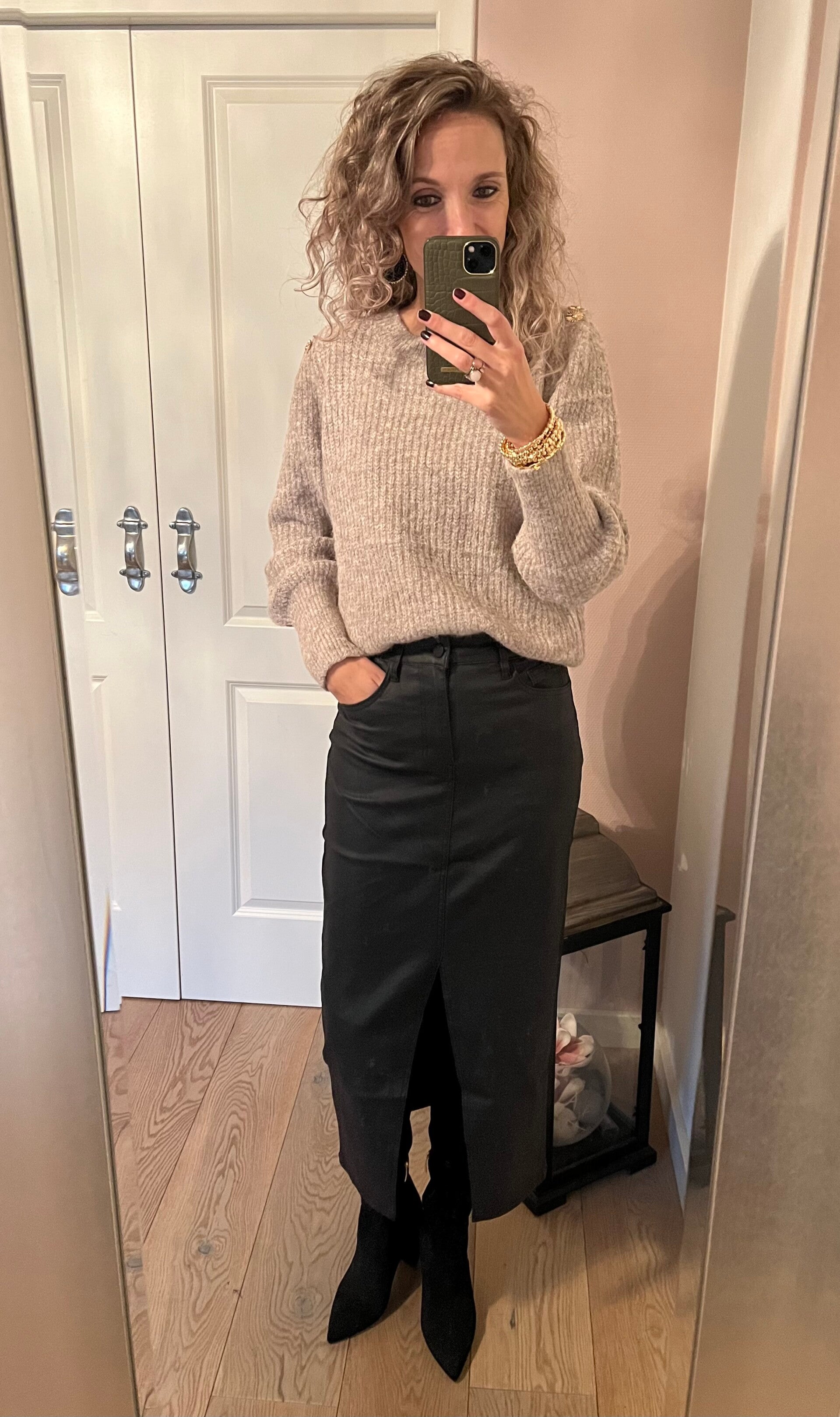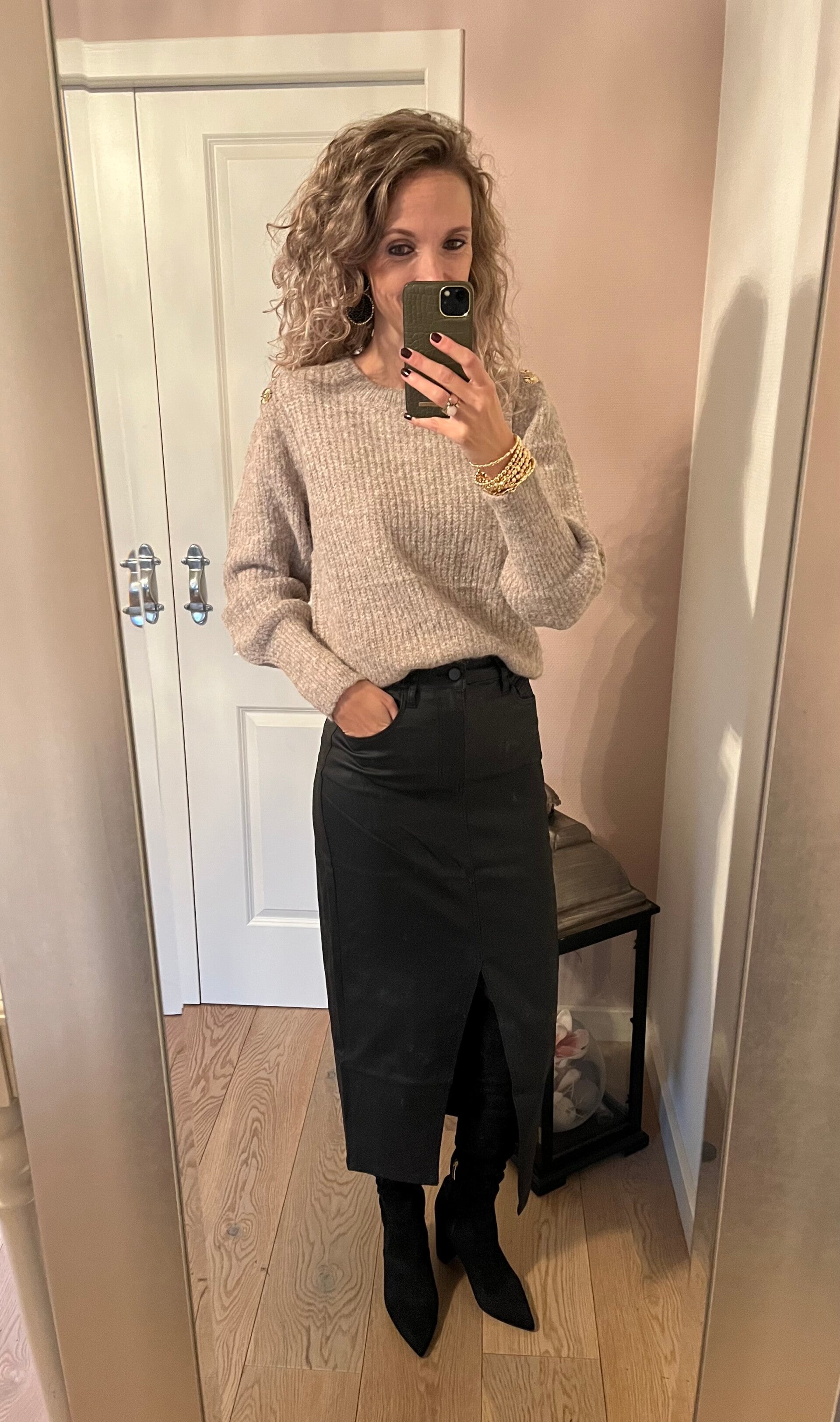 Hoe gaaf, deze gecoate rok met hoge split aan de voorzijde. De rok valt goed op maat!