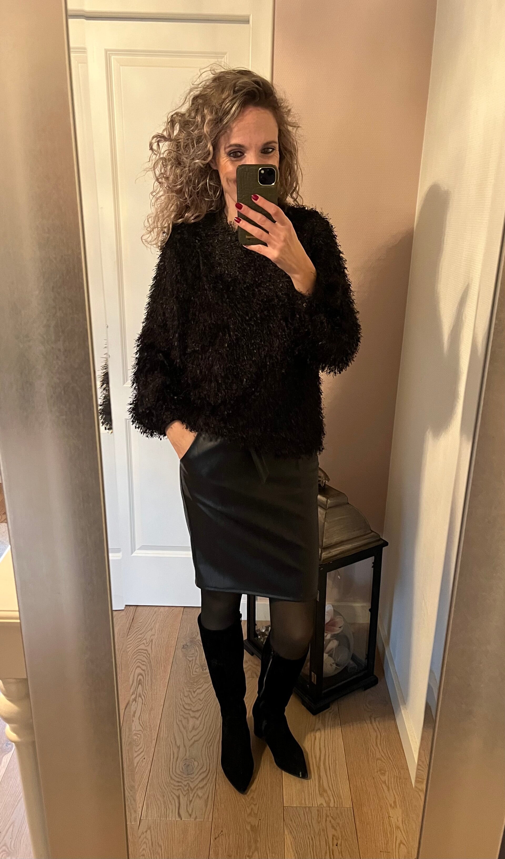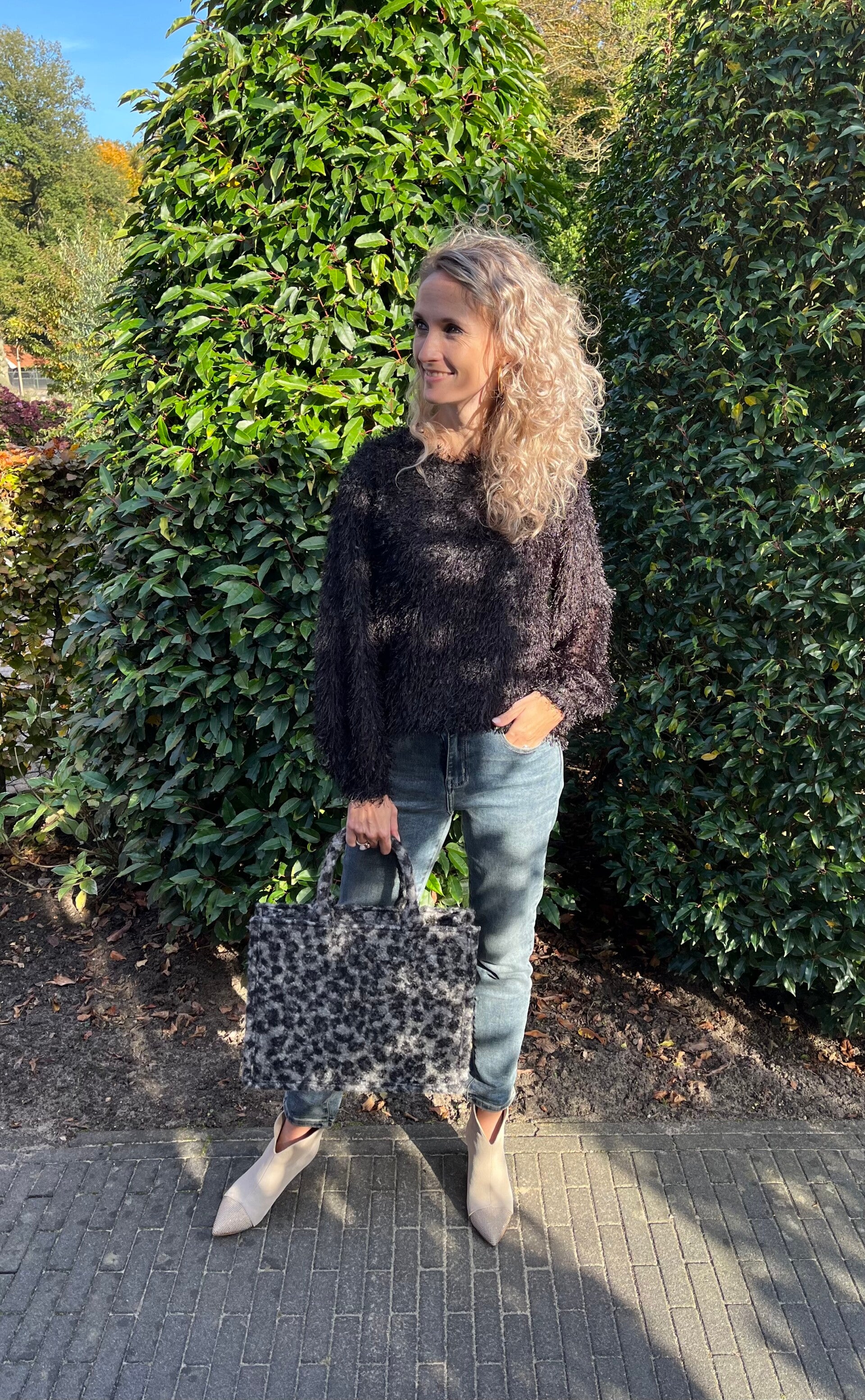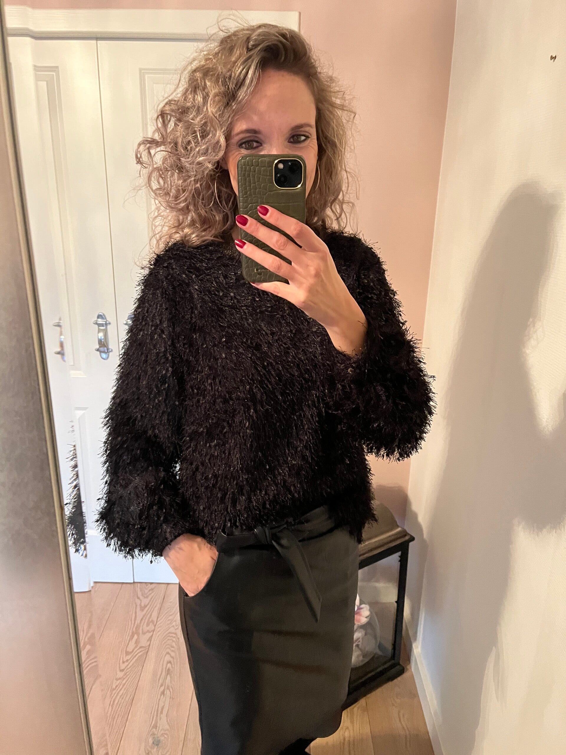 Een trui om verliefd op te worden! Leuk om met de feestdagen te dragen op een mooie rok of pantalon en daarna stoer op een jeans. Deze mooie trui hebben we in 2 kleuren en gaat in maten.