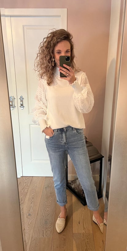 Kijk eens hoe mooi deze mouwen zijn uitgewerkt. De top is one size en te dragen t/m mt 40/42.