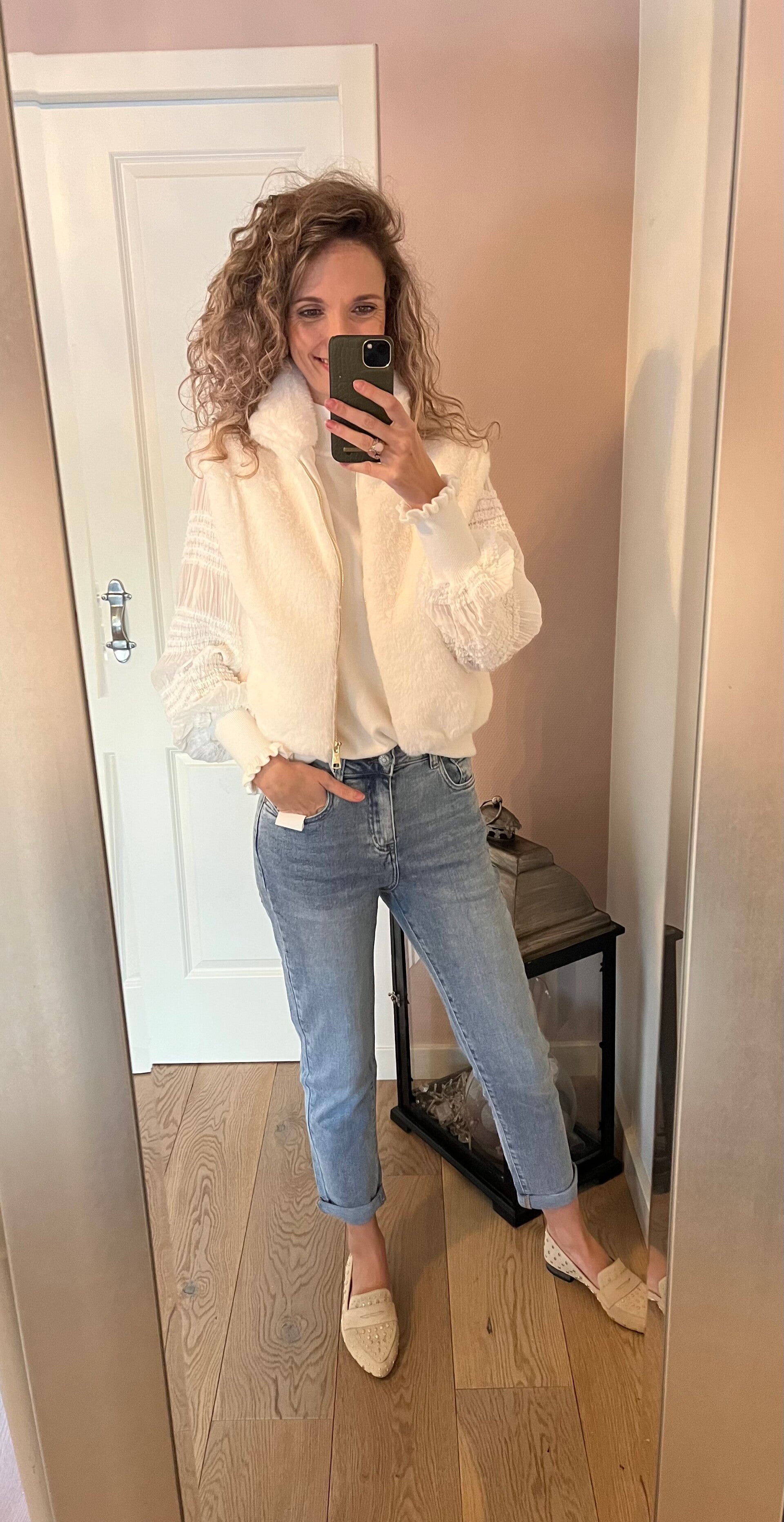 Heerlijk fijne bodywarmer. 2 zakjes en te sluiten met een rits. Dicht te dragen t/m maat 40, open t/m maat 42