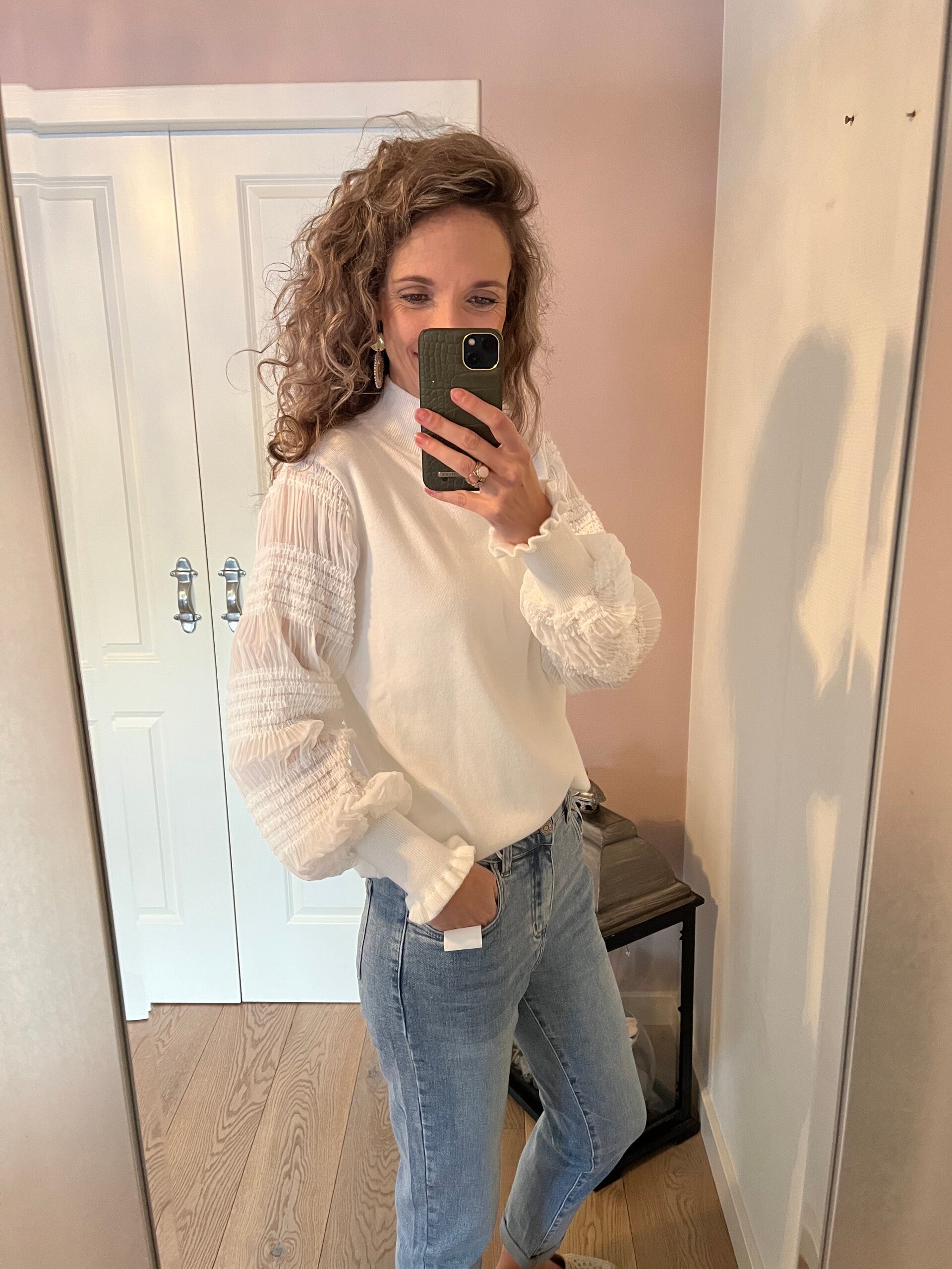 Deze fijne jeans hoort wat ruimer te zitten en valt goed op maat. Wil je de jeans graag aangesloten hebben zitten pak dan een maat kleiner.