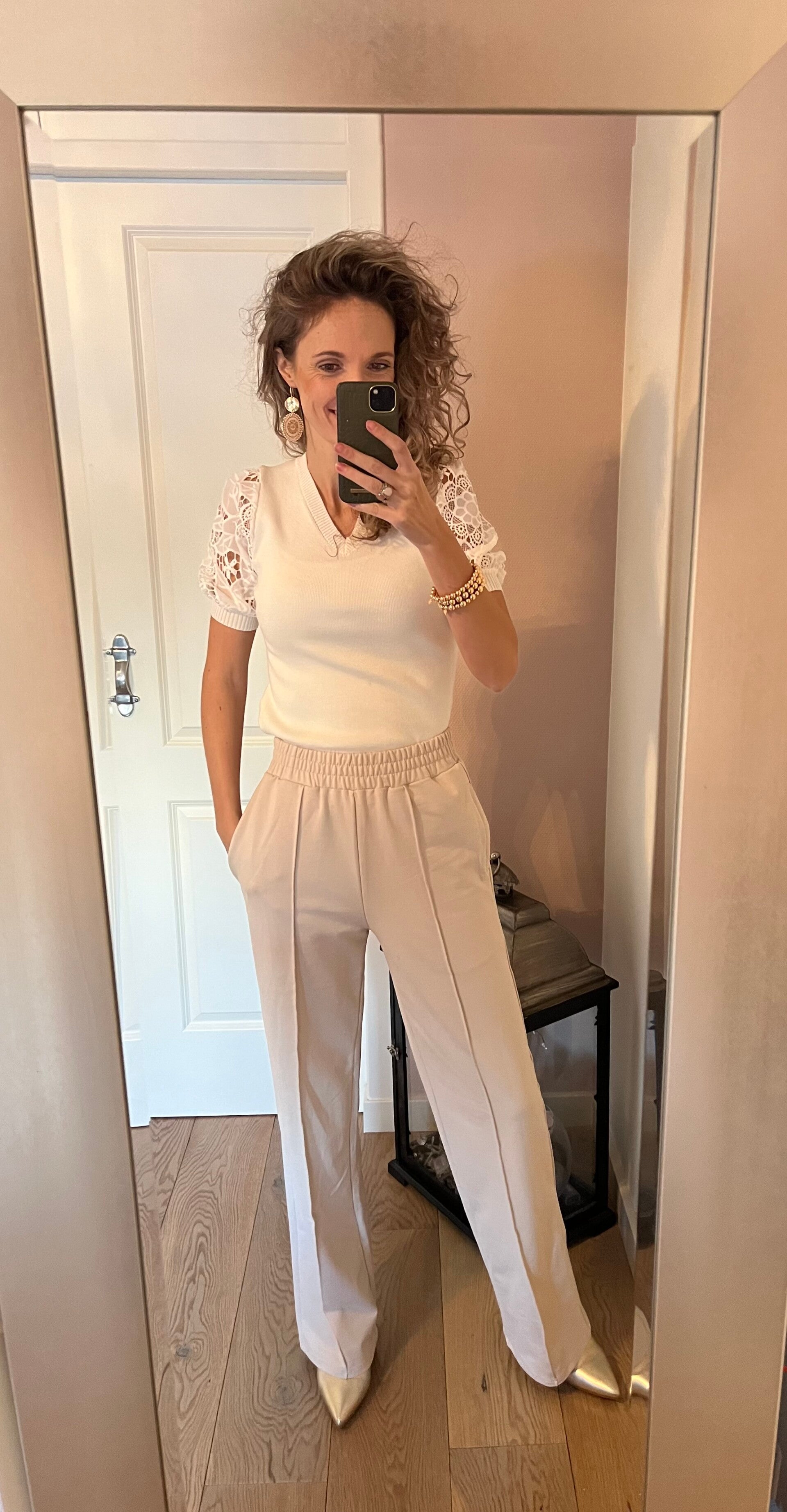 Je kan deze broek natuurlijk op tal van manieren combineren. Wij hebben het hier op twee verschillende manieren gedaan.
