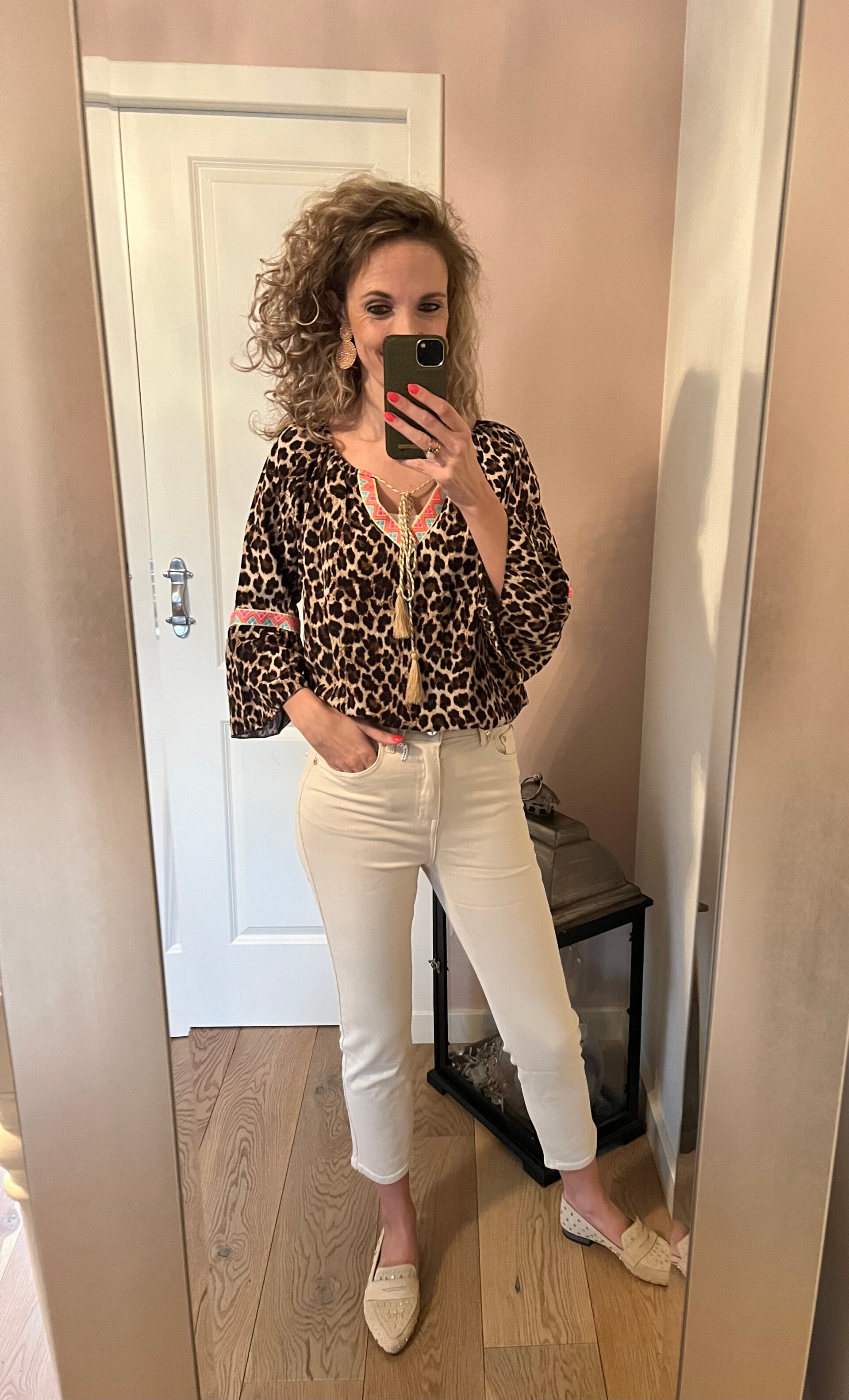Deze fijne mom jeans is een high waist model en heeft een iets kortere lengte. Ons model is 1.74 cm. De jeans valt goed op maat