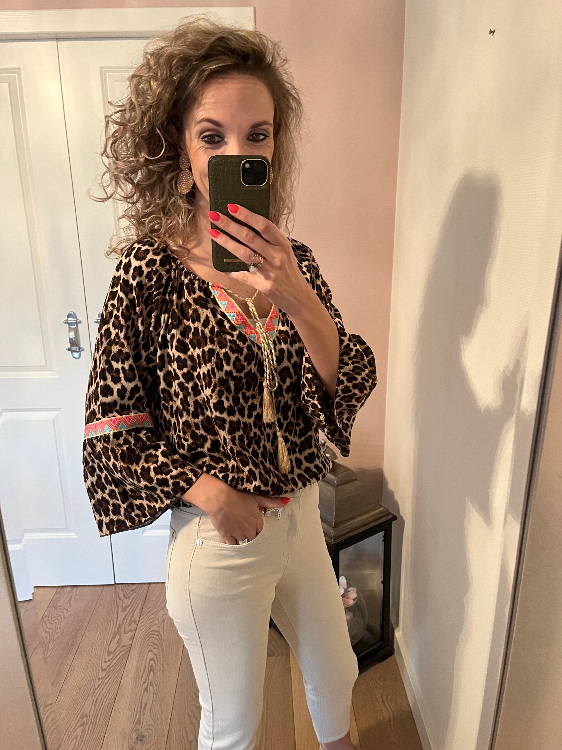 Deze fijne mom jeans is een high waist model en heeft een iets kortere lengte. Ons model is 1.74 cm. De jeans valt goed op maat