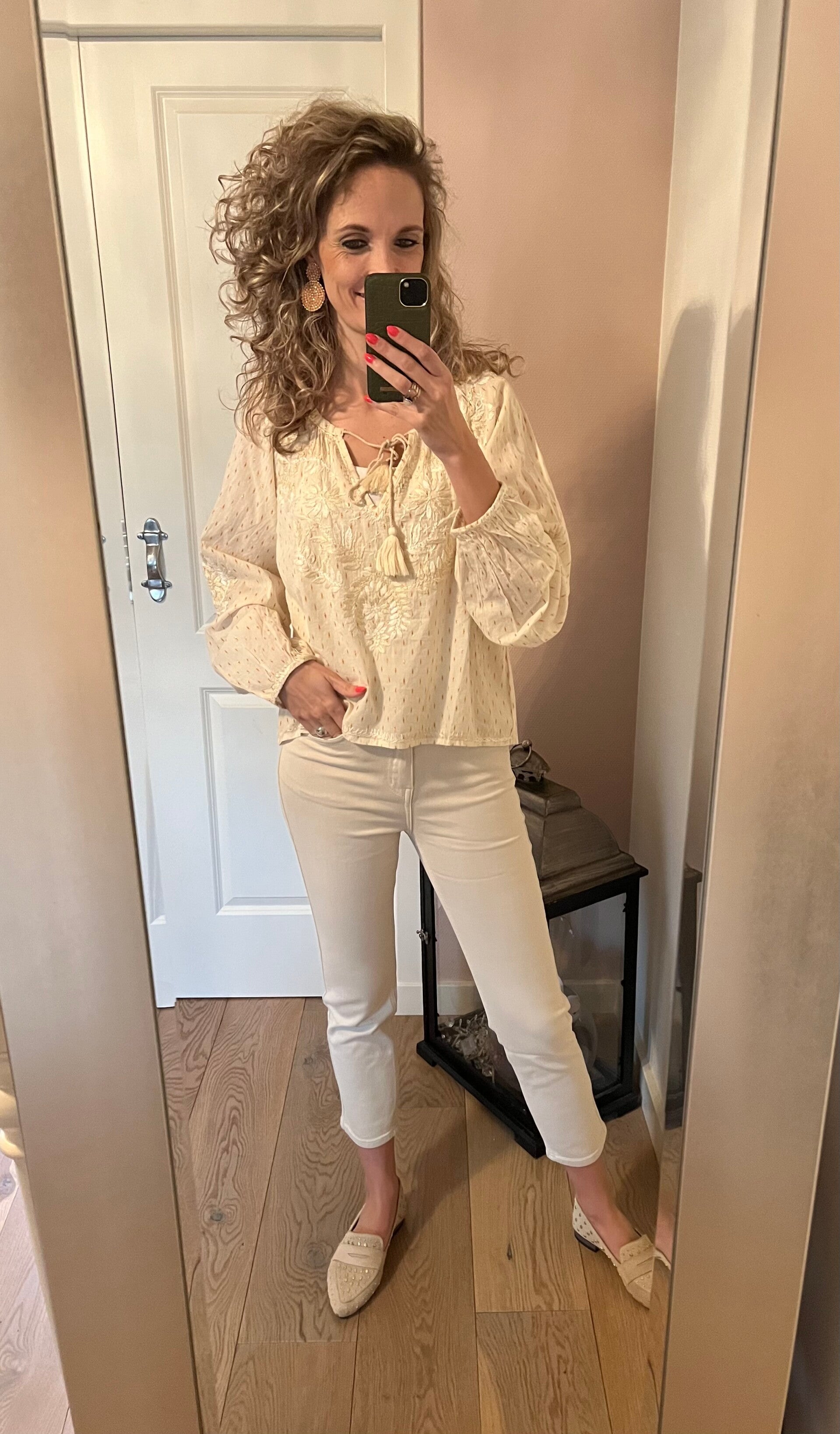Deze fijne mom jeans is een high waist model en heeft een iets kortere lengte. Ons model is 1.74 cm. De jeans valt goed op maat