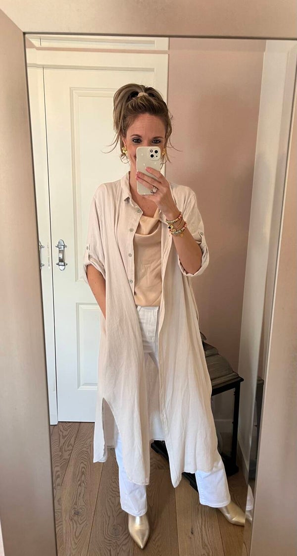 Ons model draagt maat 36, haar eigen maat. Ze is 1.74 cm