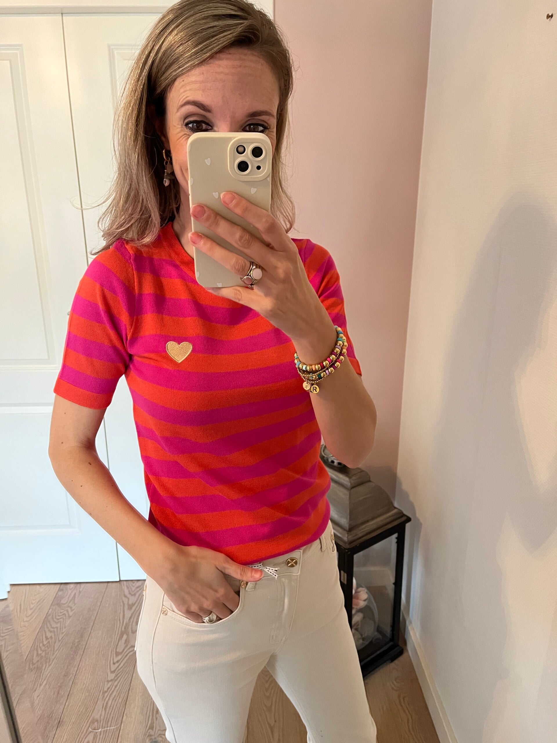 Deze fijne mom jeans is een high waist model en heeft een iets kortere lengte. Ons model is 1.74 cm. De jeans valt goed op maat