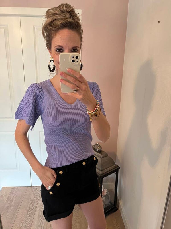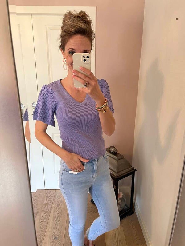 Deze top valt op maat. Ons model draagt haar eigen maat, maat S/M