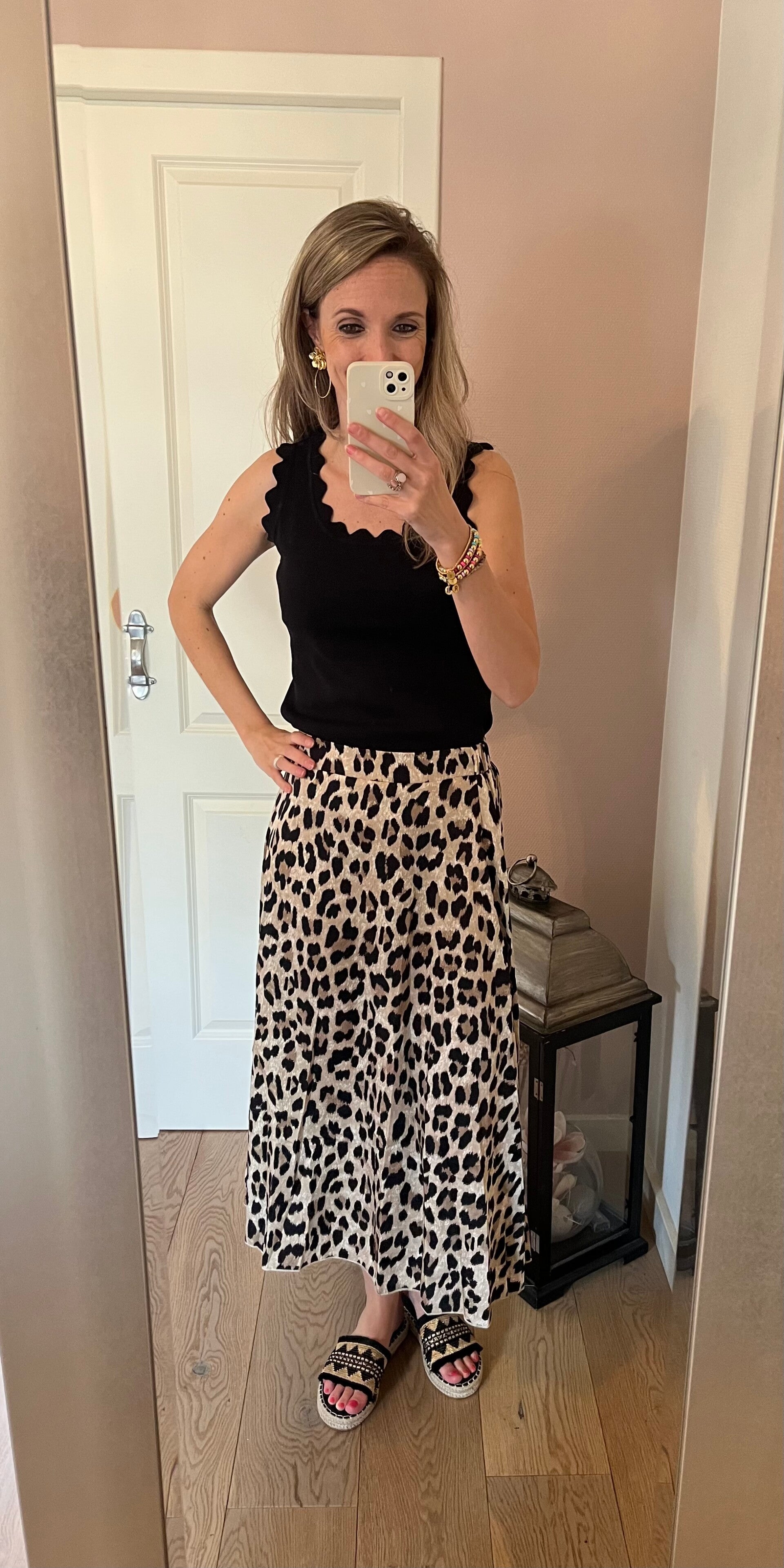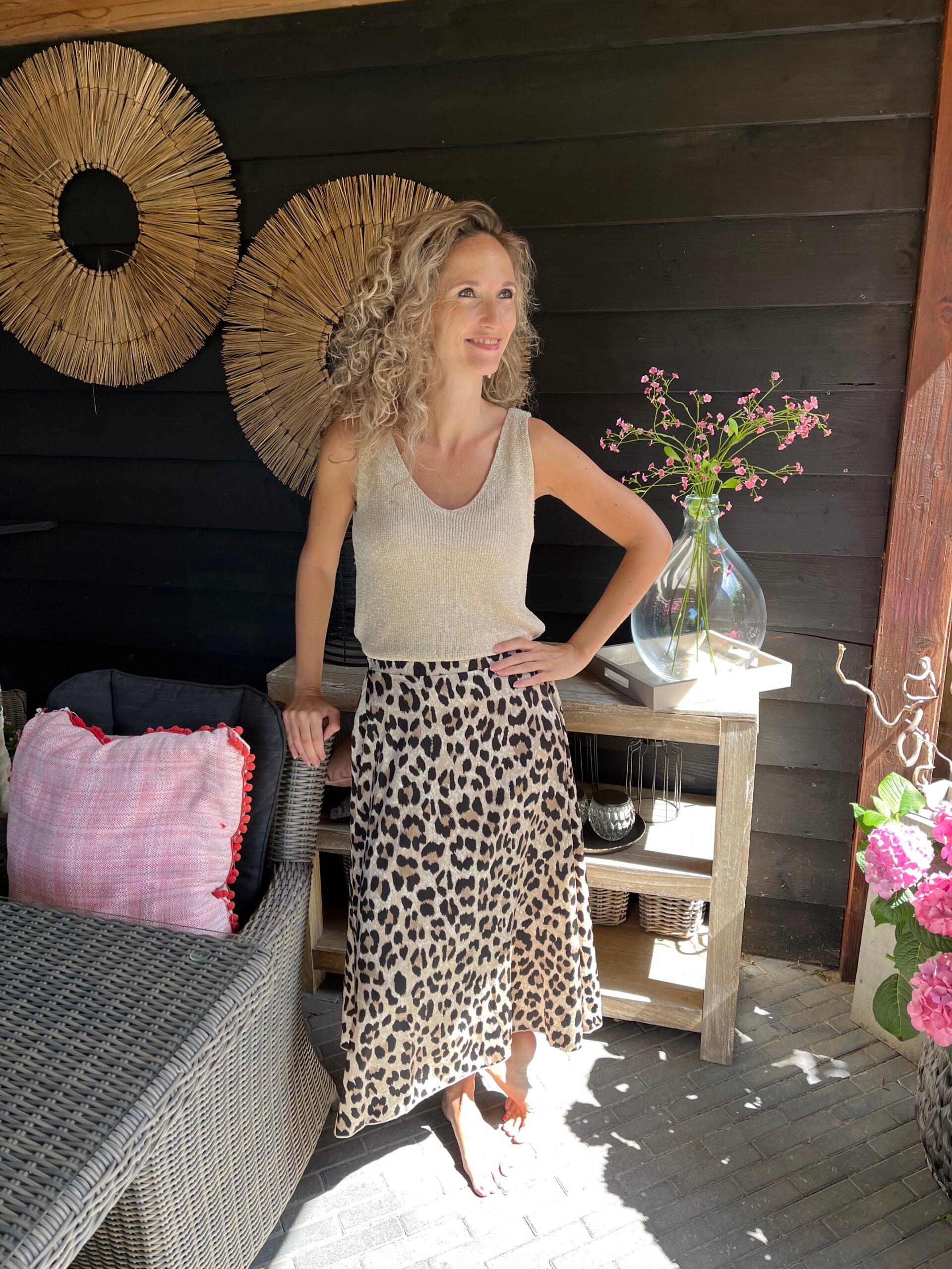 De top valt op maat, ons model draagt maat S/M