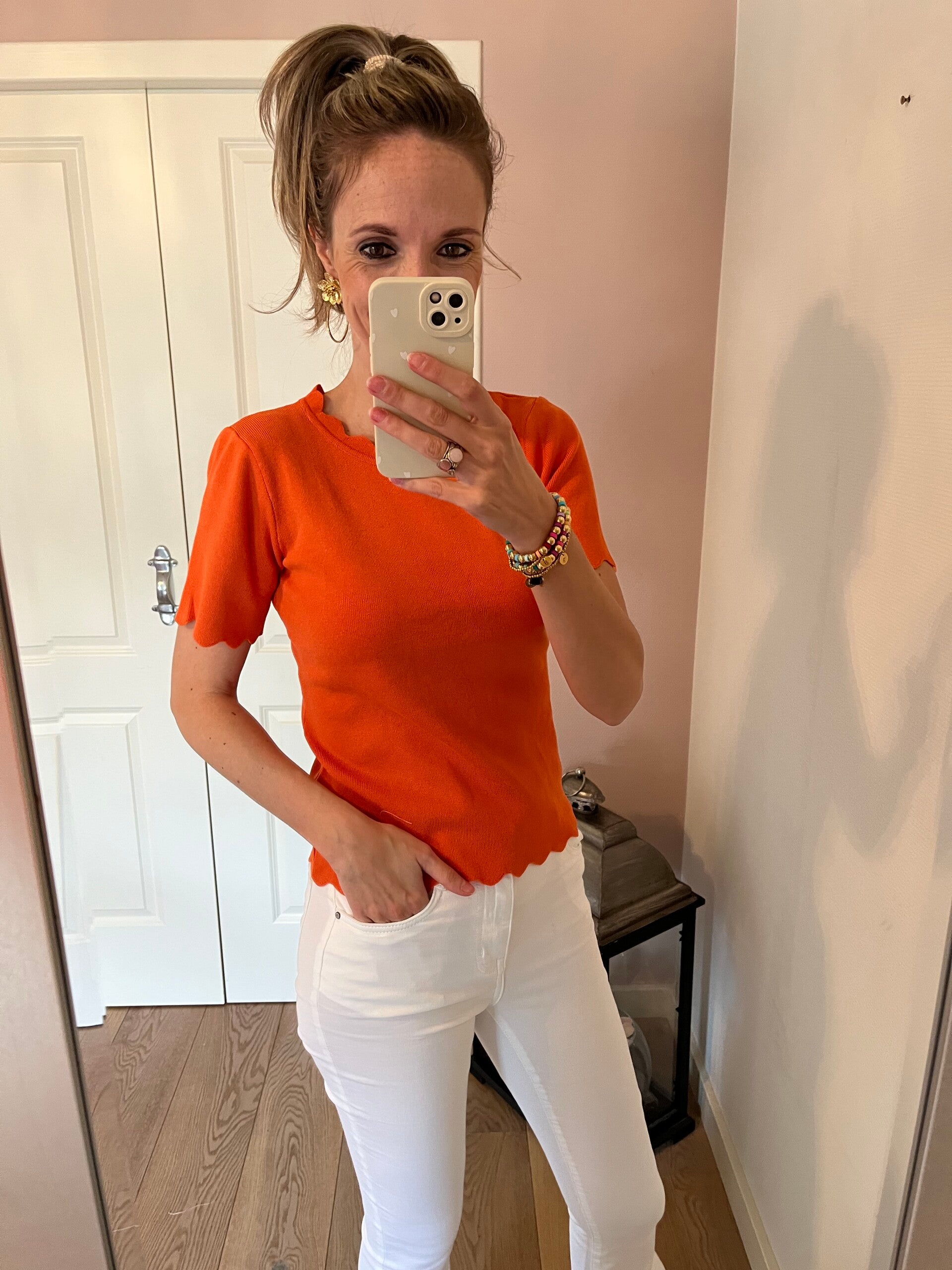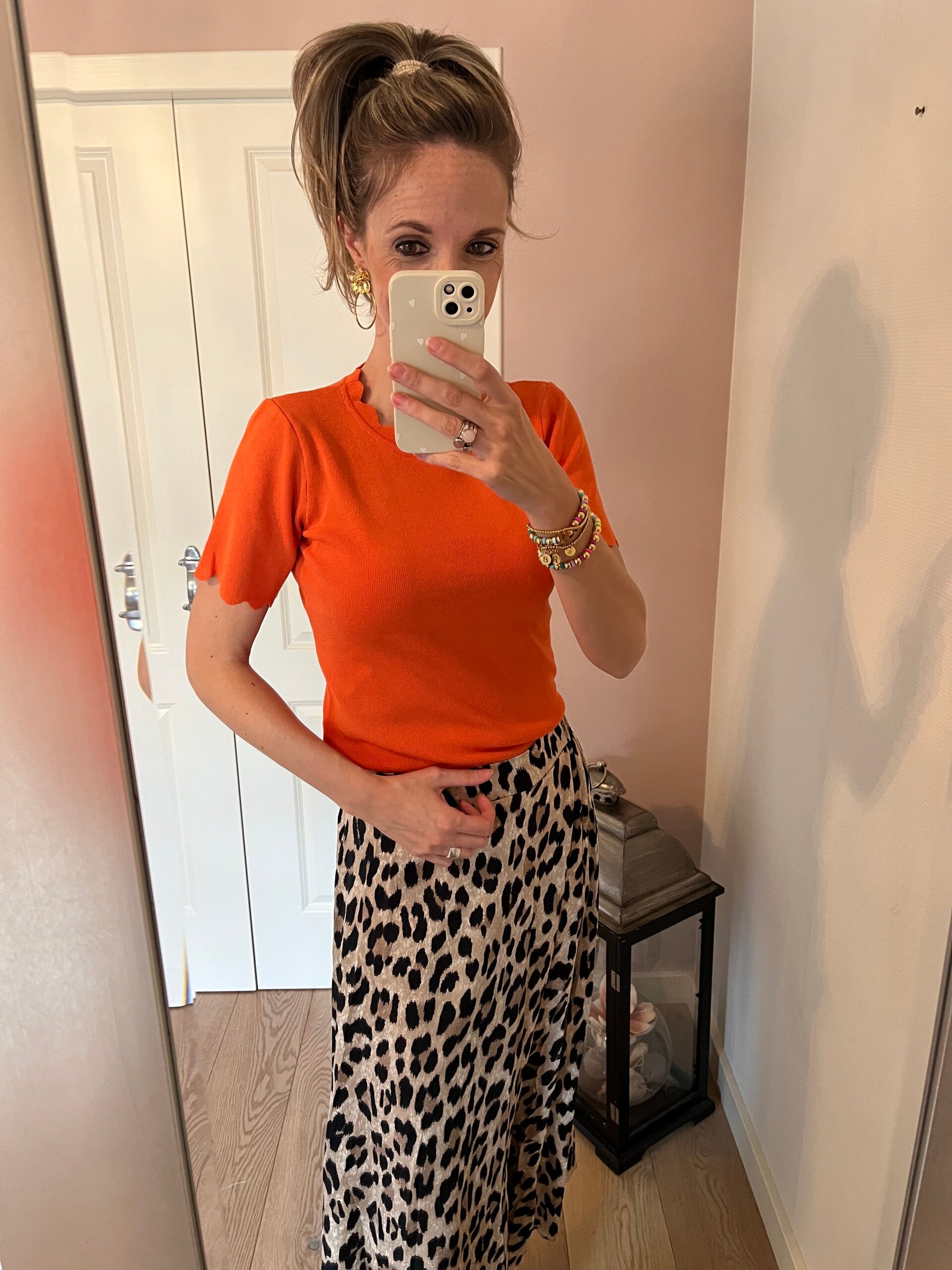 Ons model draagt maat 36, haar eigen maat. Ze is 1.74 cm