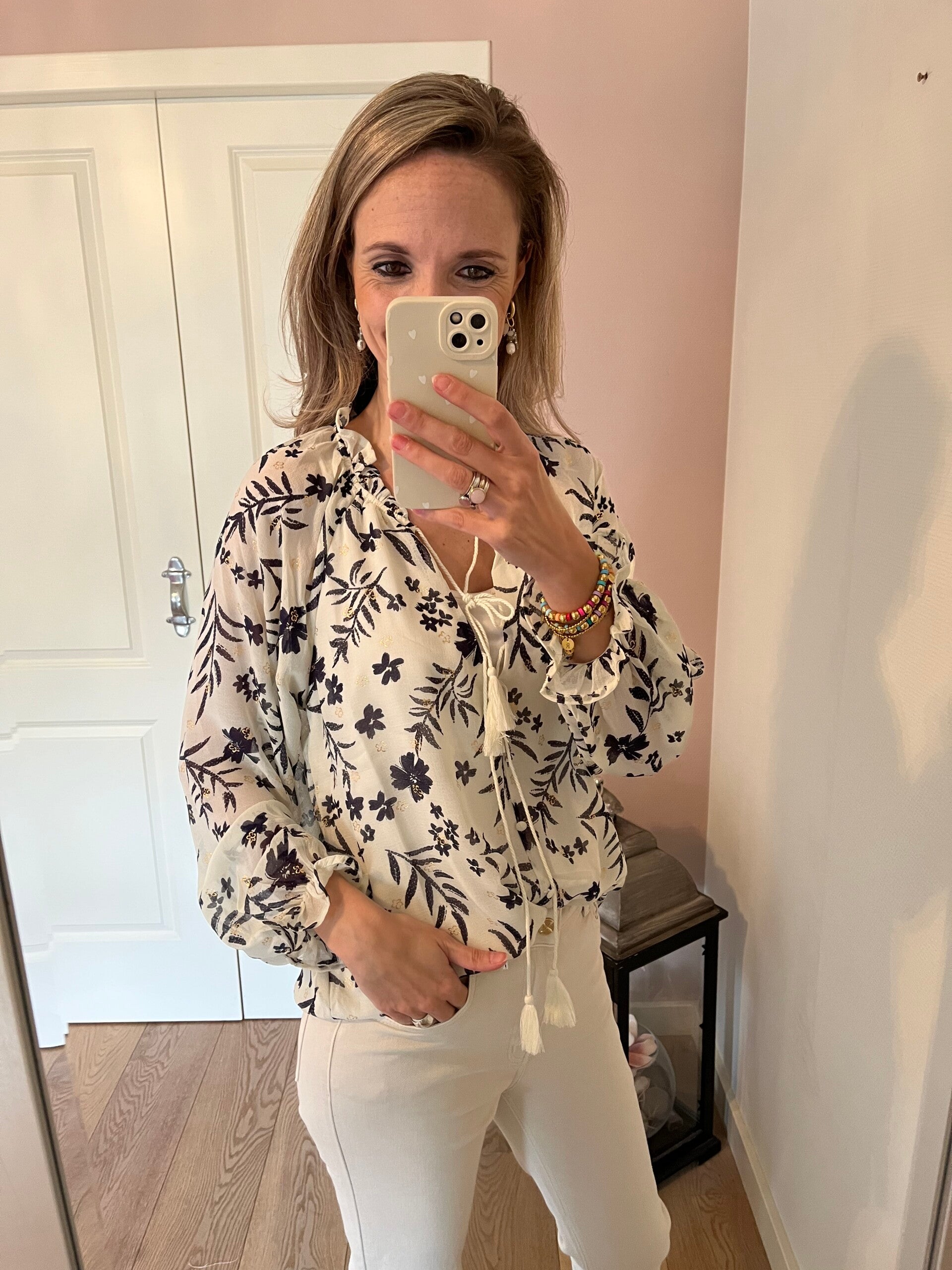 Deze fijne mom jeans is een high waist model en heeft een iets kortere lengte. Ons model is 1.74 cm. De jeans valt goed op maat