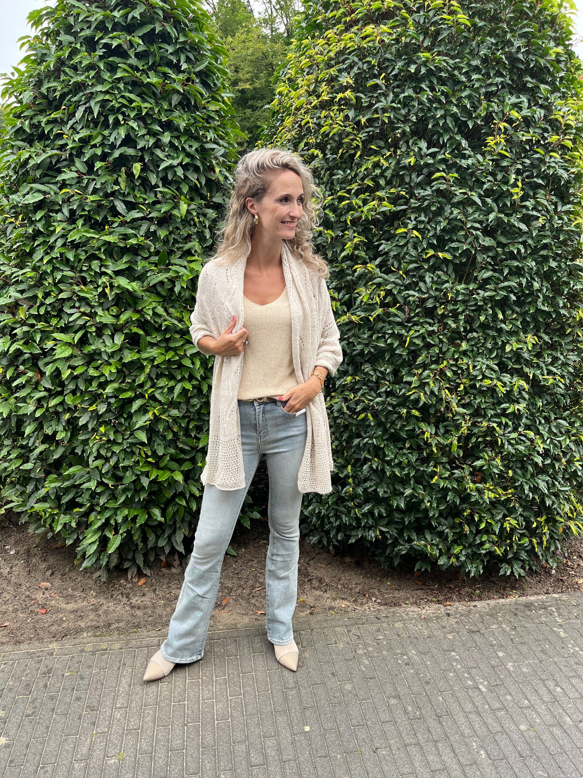 Deze top jeans zit niet alleen fijn, is goed qua lengte (voor de kleinere dames is deze korter te maken) het staat ook nog eens mooi. Deze jeans zit tussen een mid waist en een high waist in en valt prima op maat. Ons model is 174 cm.