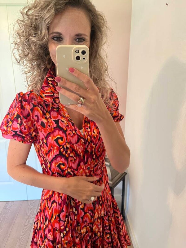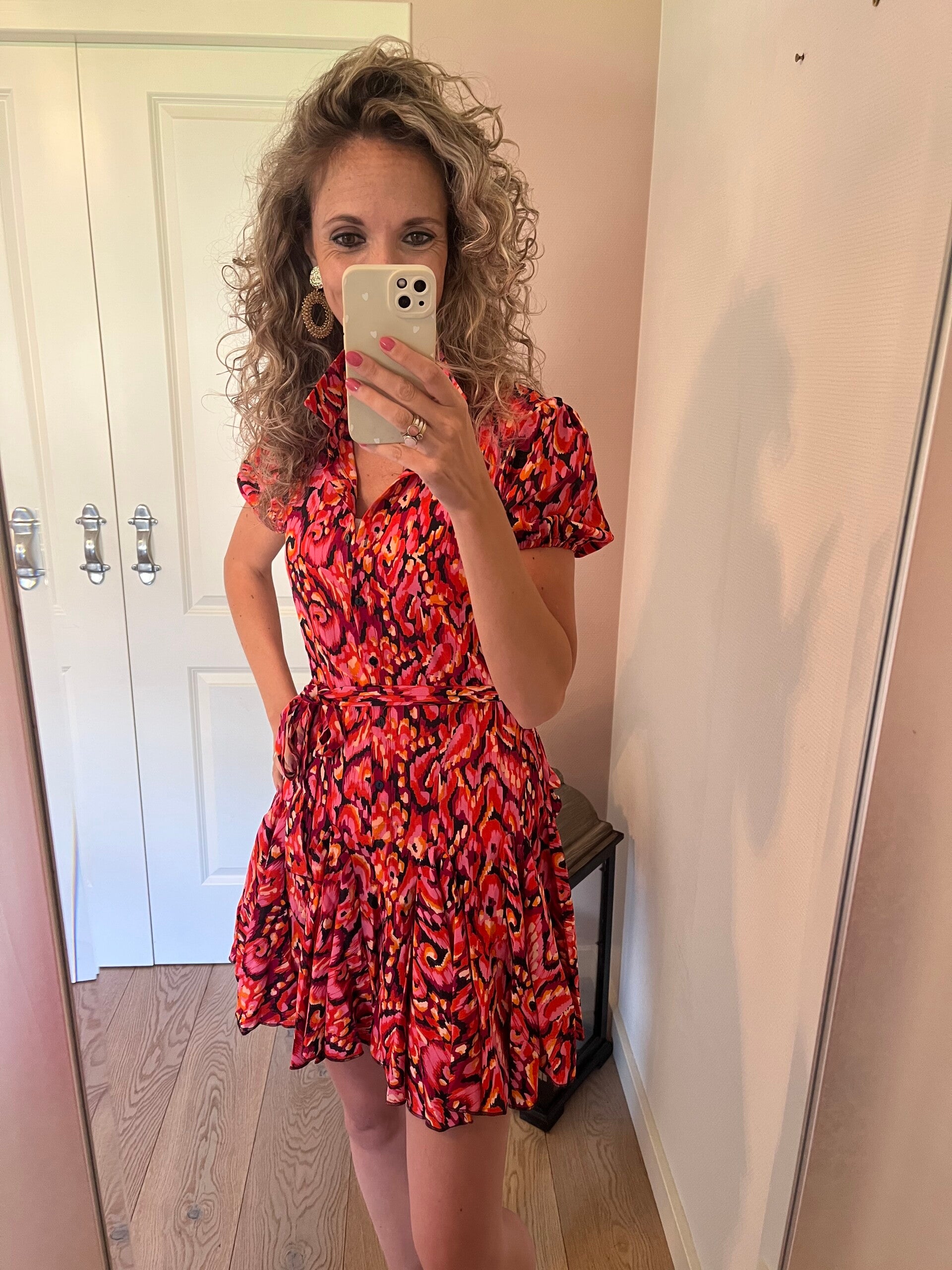 Dit super leuke zomerse jurkje mag niet ontbreken in jouw garderobe. Zie jij jezelf al shinen in dit fleurige jurkje? Het jurkje is doorknoop en heeft een los ceintuur.