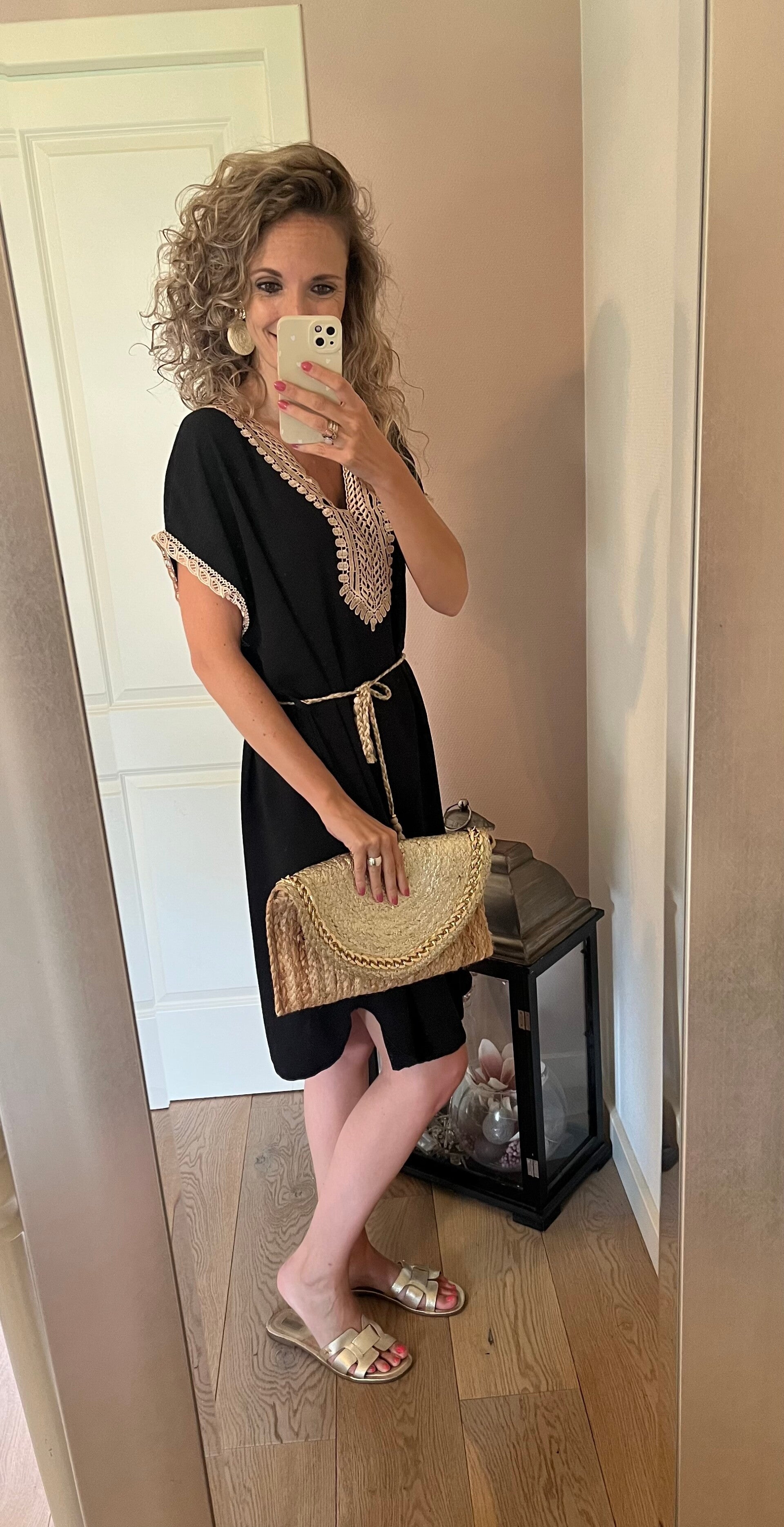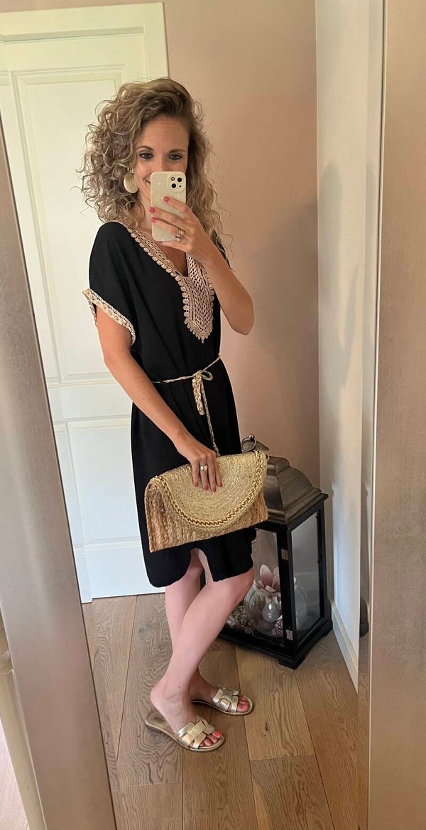 Dit leuke jurkje hebben we in 2 kleuren. Het ceintuur kan ook uit de jurk gelaten worden. De jurk is one size en te dragen t/m maat 40/42