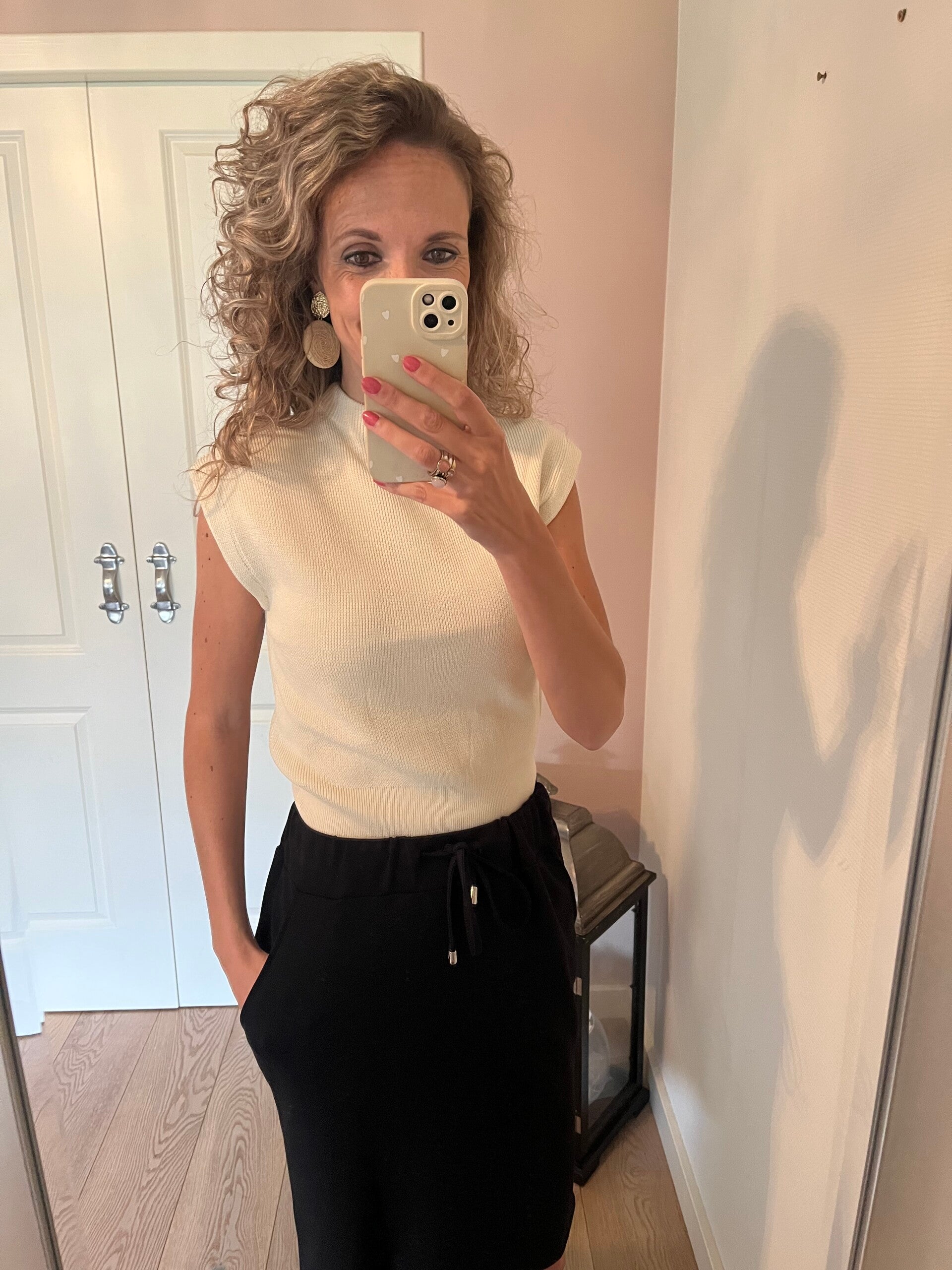 Dit fijne jogg rokje kan je zowel sportief als netjes dragen. Leuk aan de voorzijde te strikken met een koord. De rok gaat in maten en valt op maat.