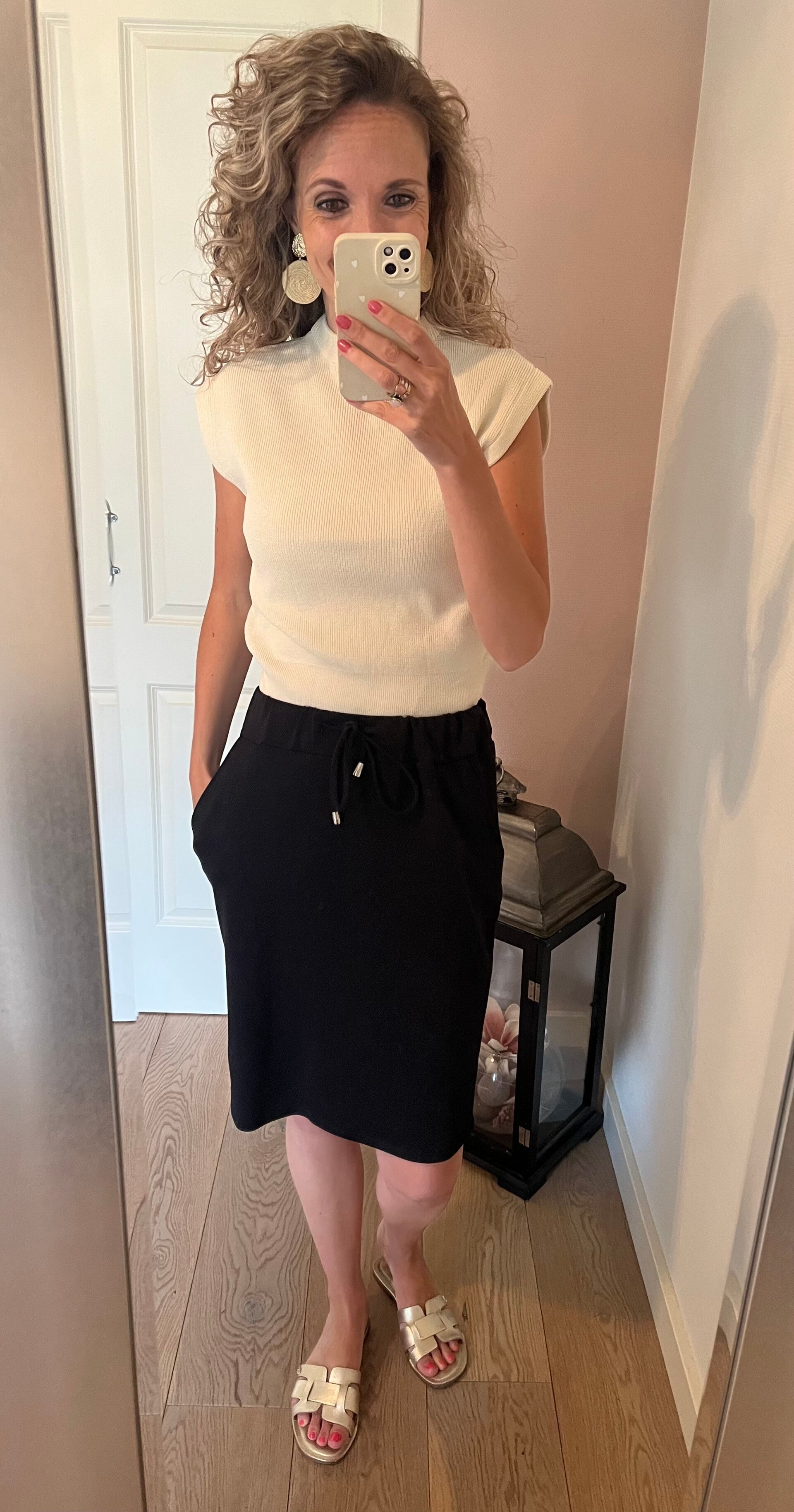 Dit fijne jogg rokje kan je zowel sportief als netjes dragen. Leuk aan de voorzijde te strikken met een koord. De rok gaat in maten en valt op maat.