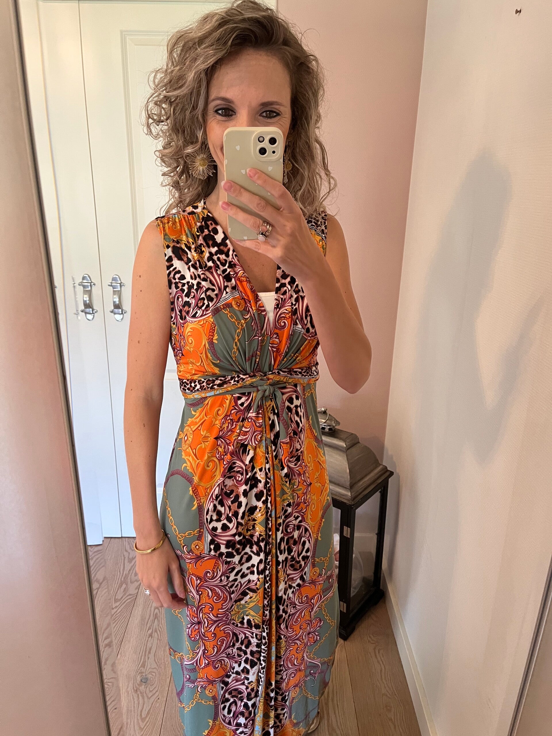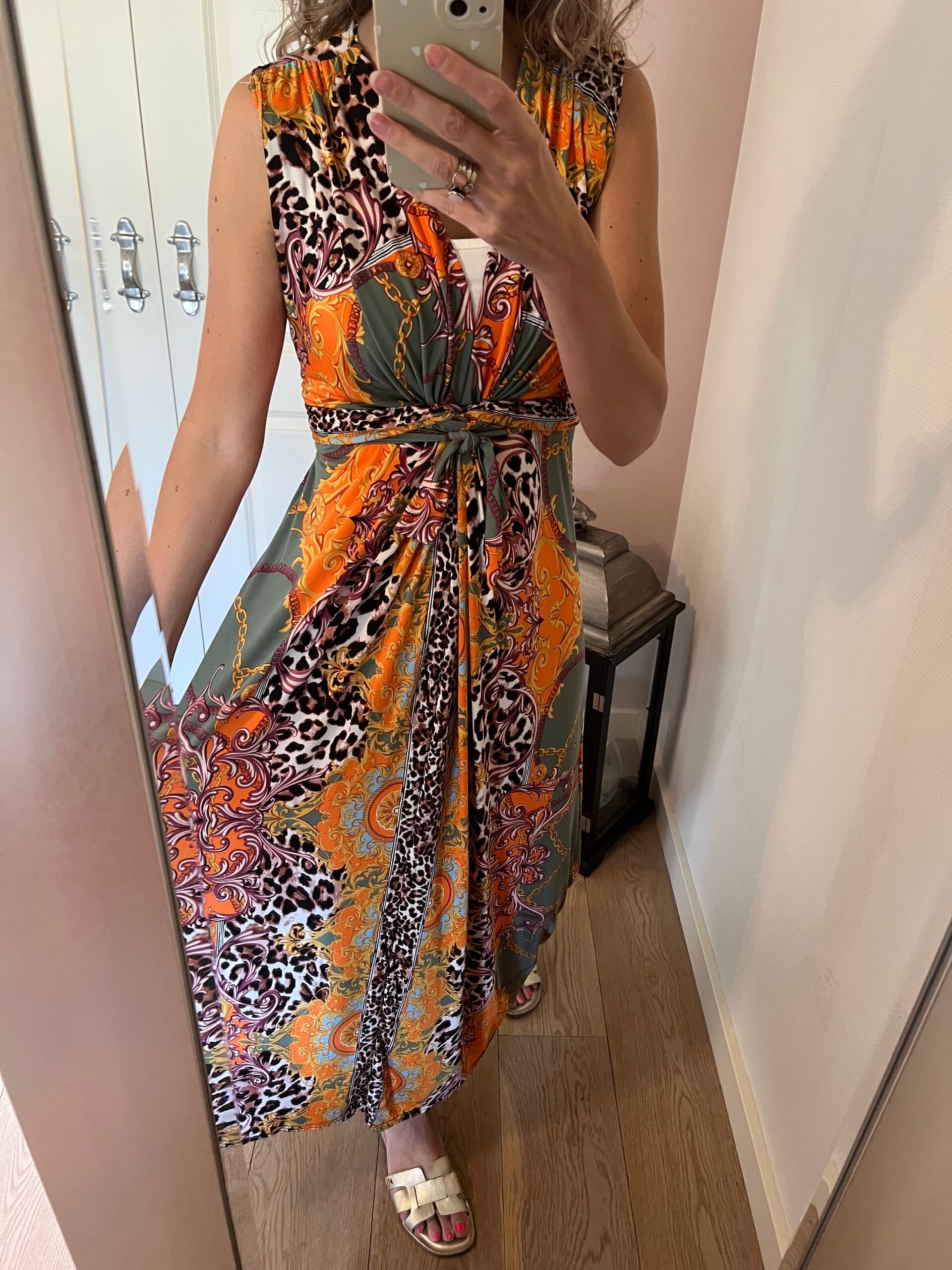 Deze mooie jurk is one size en te dragen t/m maat 40/42.
