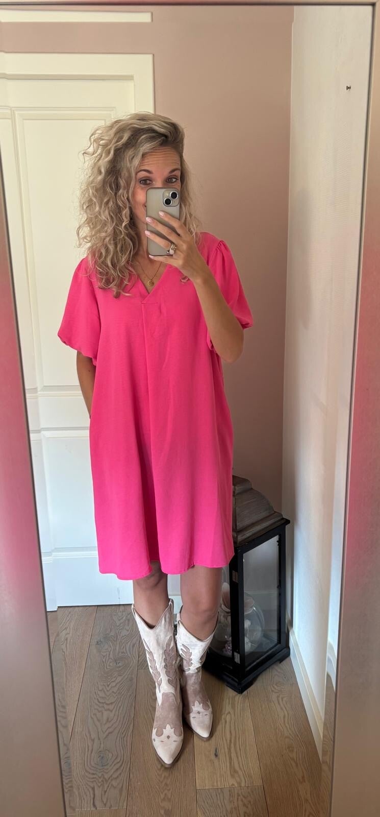 Deze fijne jurk heeft 2 zakken en gaat in maten. De jurk valt netjes op maat. Deze jurk is er in meerdere kleuren