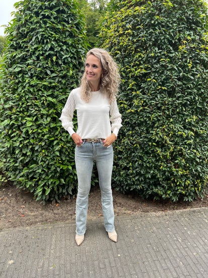 Deze top jeans zit niet alleen fijn, is goed qua lengte (voor de kleinere dames is deze korter te maken) het staat ook nog eens mooi. Deze jeans zit tussen een mid waist en een high waist in en valt prima op maat. Ons model is 174 cm.