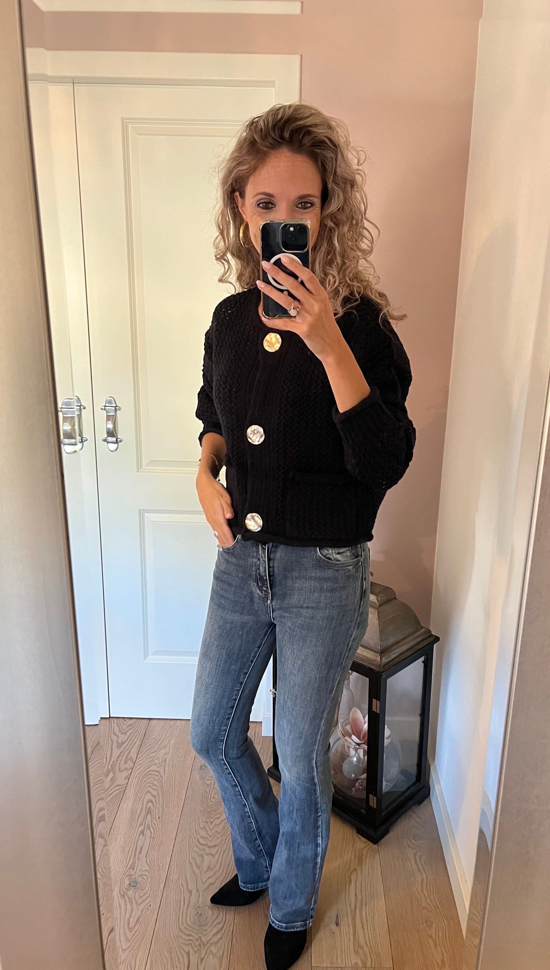Deze fijne Flared jeans zit tussen een mid waist en high waist in. Valt goed op maat en bevat stretch.
