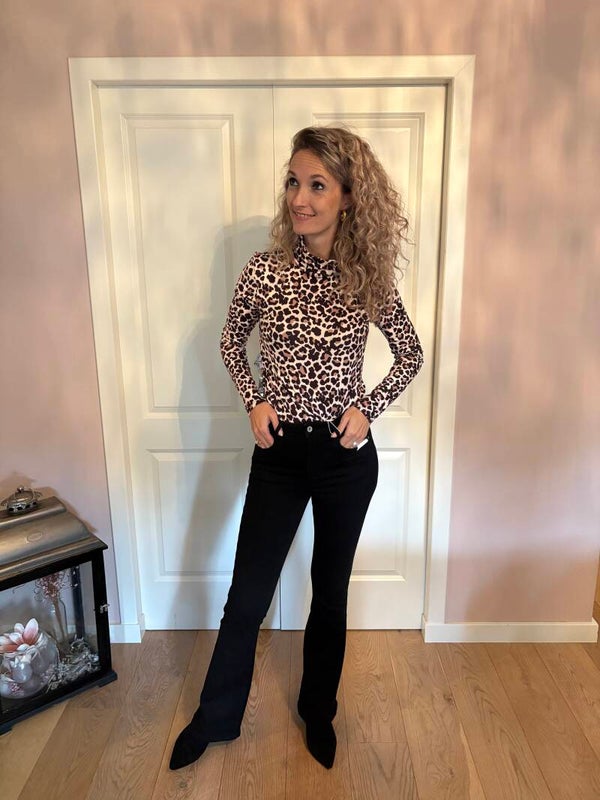 Deze fijne Flared jeans zit tussen een mid waist en high waist in. Valt goed op maat en bevat stretch.