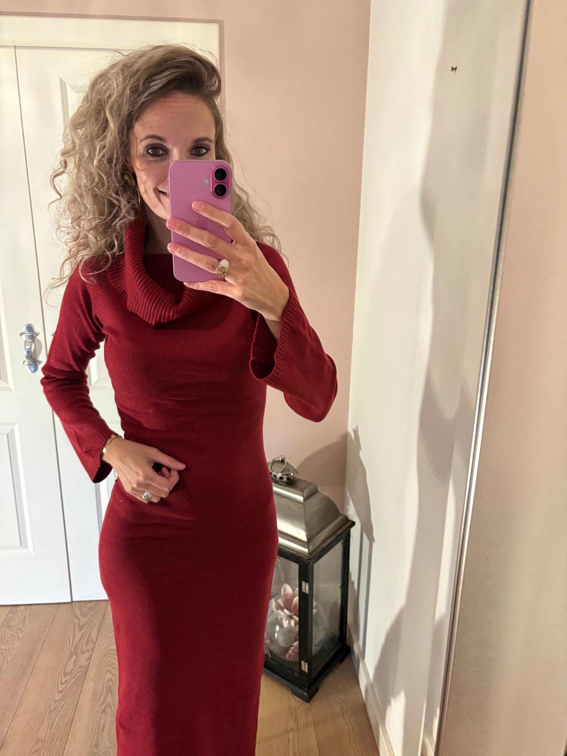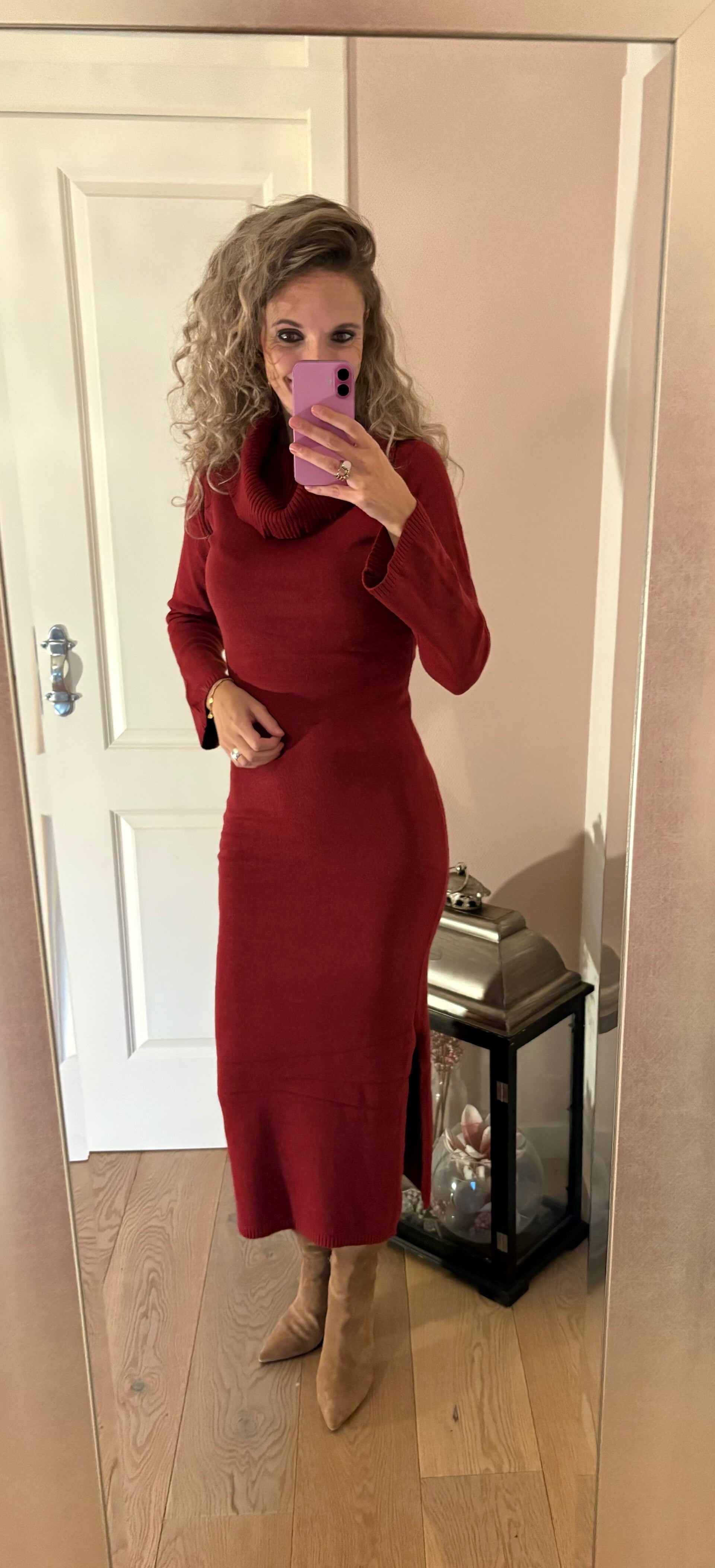Deze heerlijke hang coljurk is gemaakt van een fijn breisel in de mooie najaarskleur. De jurk heeft aan een kant een split en is one size. Te dragen van maat 34/40