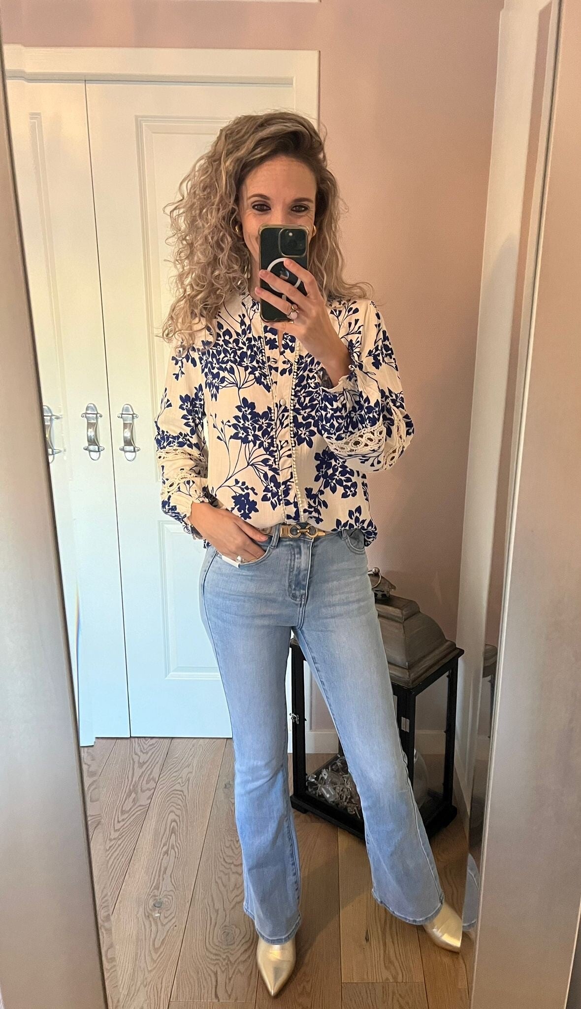 Deze fijne Flared jeans zit tussen een mid waist en high waist in. Valt goed op maat en bevat stretch.