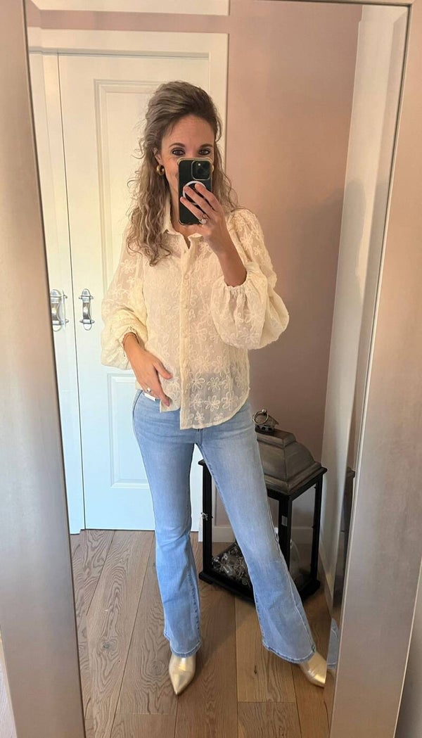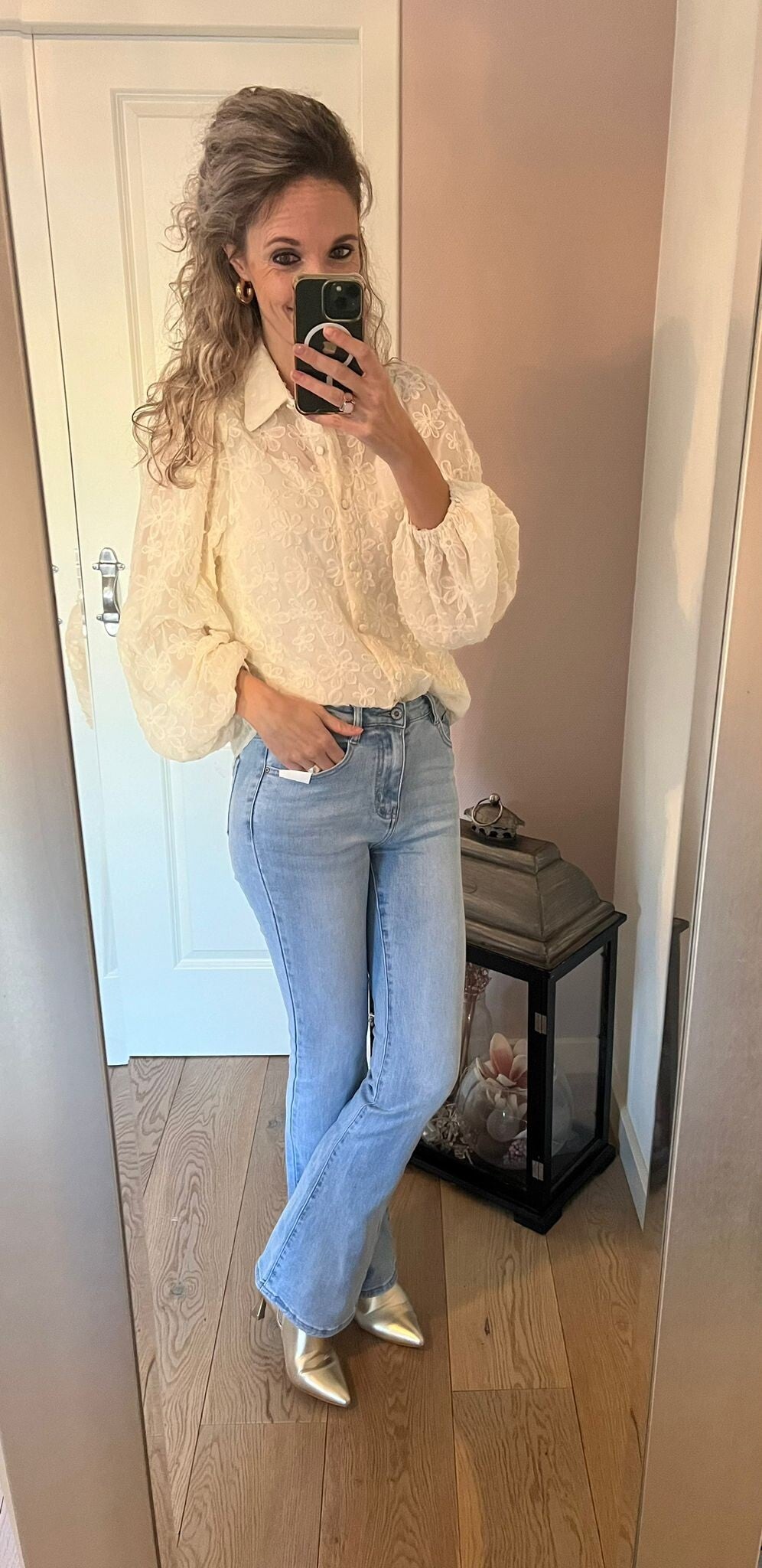 Deze fijne Flared jeans zit tussen een mid waist en high waist in. Valt goed op maat en bevat stretch.