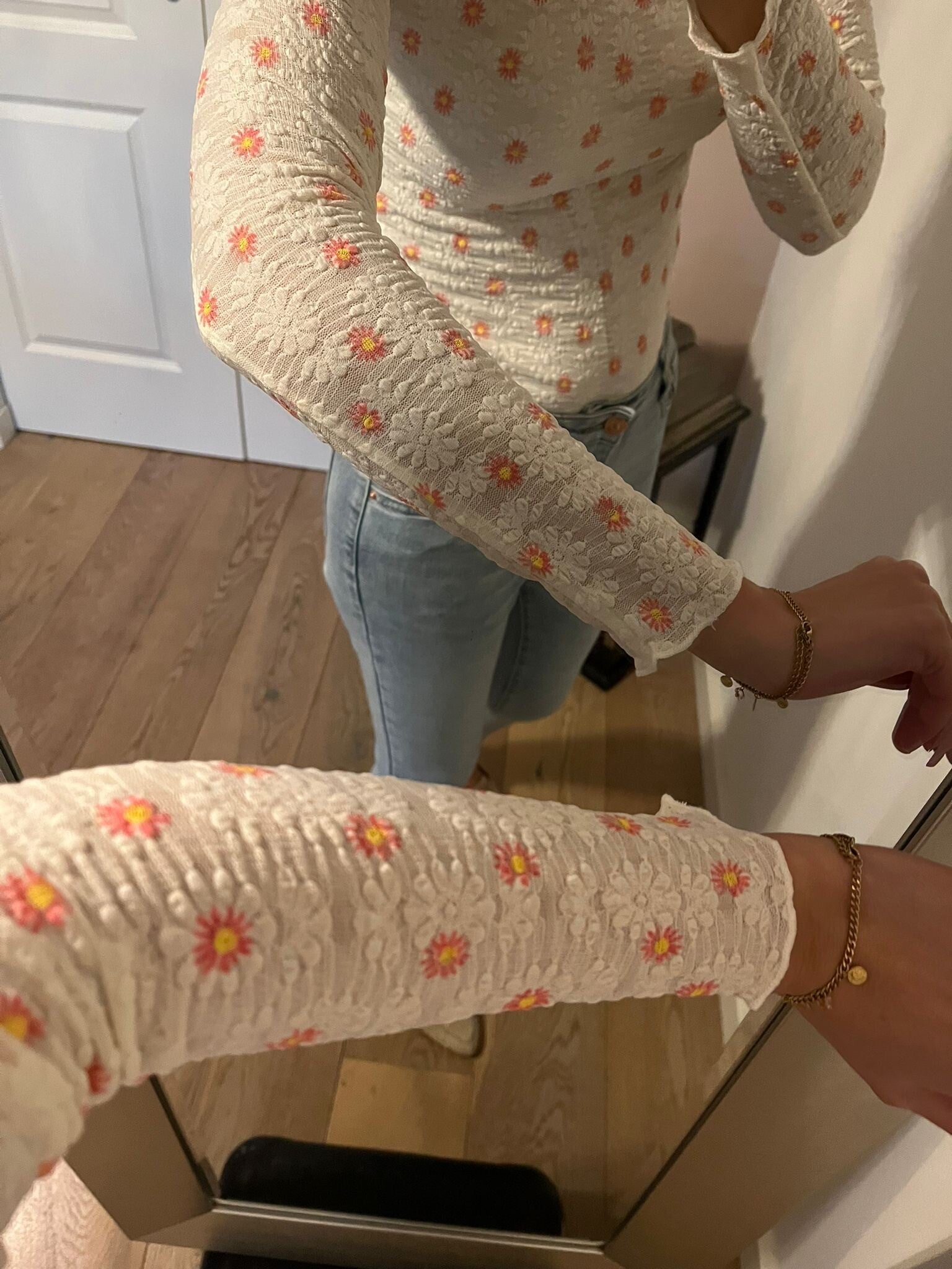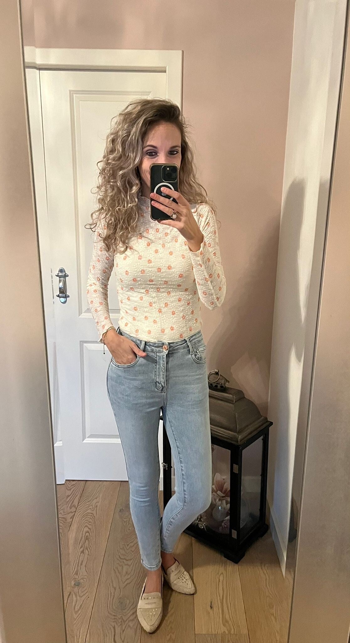 Deze fijne jeans van het merk Folyrose draagt heerlijk door de stretch. Het model zit tussen een mid en high waist in en valt goed op maat. Ons model is 1.73 cm